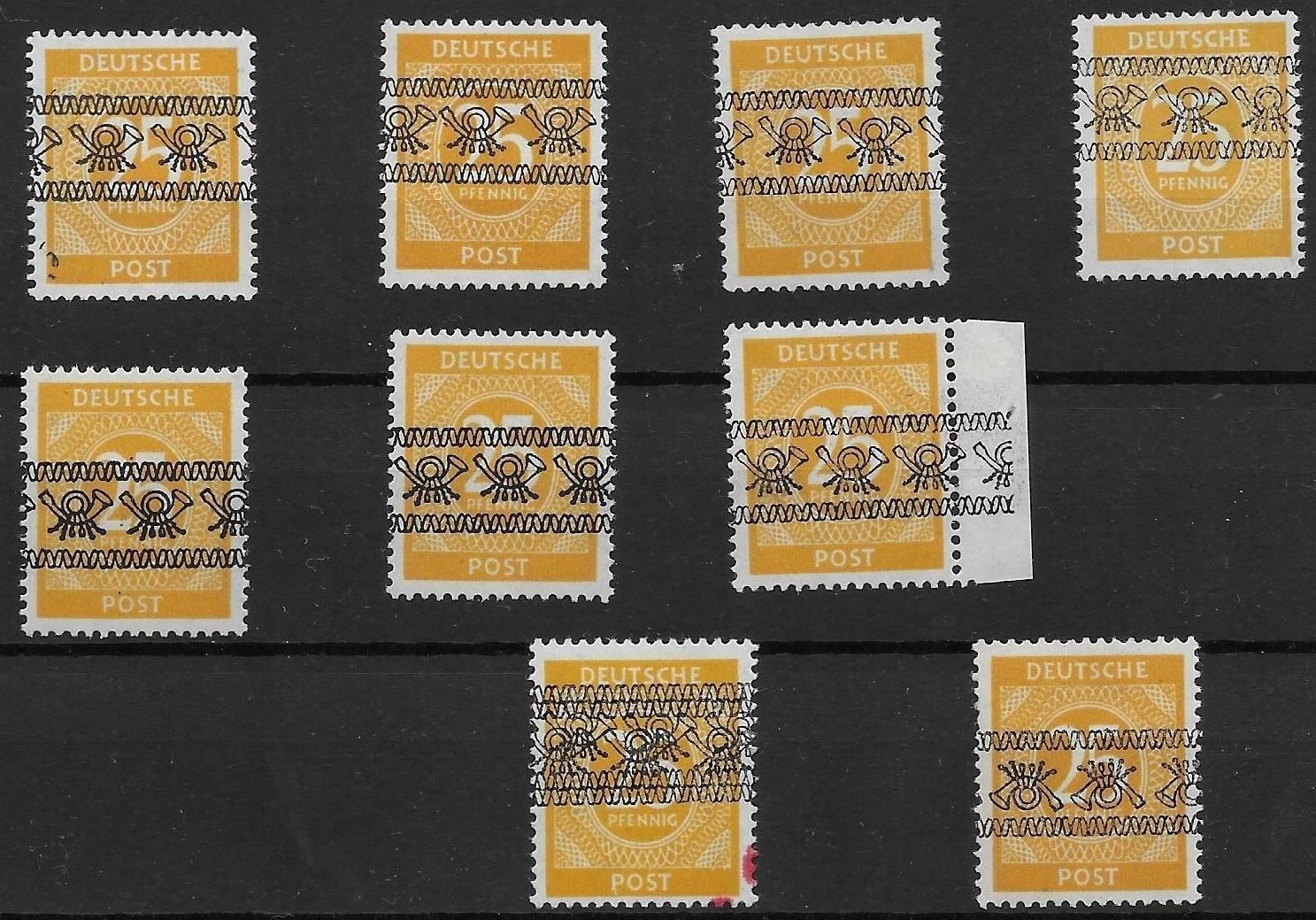 Auswahl: Bi-Zone aus Nr. 62 I Bandaufdruck, postfrisch & geprüft siehe Bilder