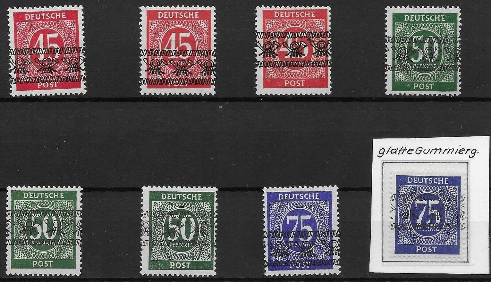 Auswahl: Bi-Zone aus Nr. 65/67 I Bandaufdruck, postfrisch & geprüft siehe Bilder