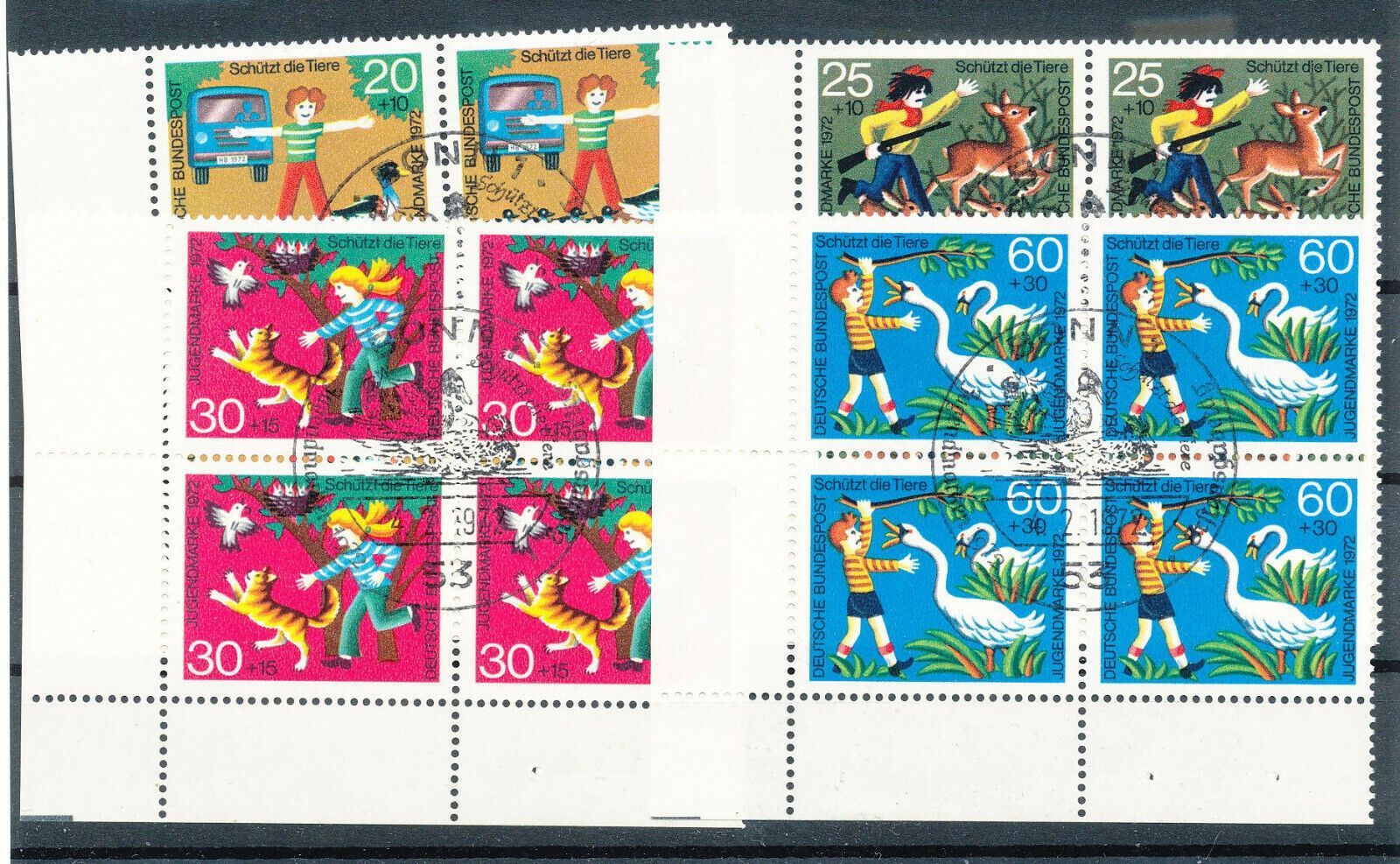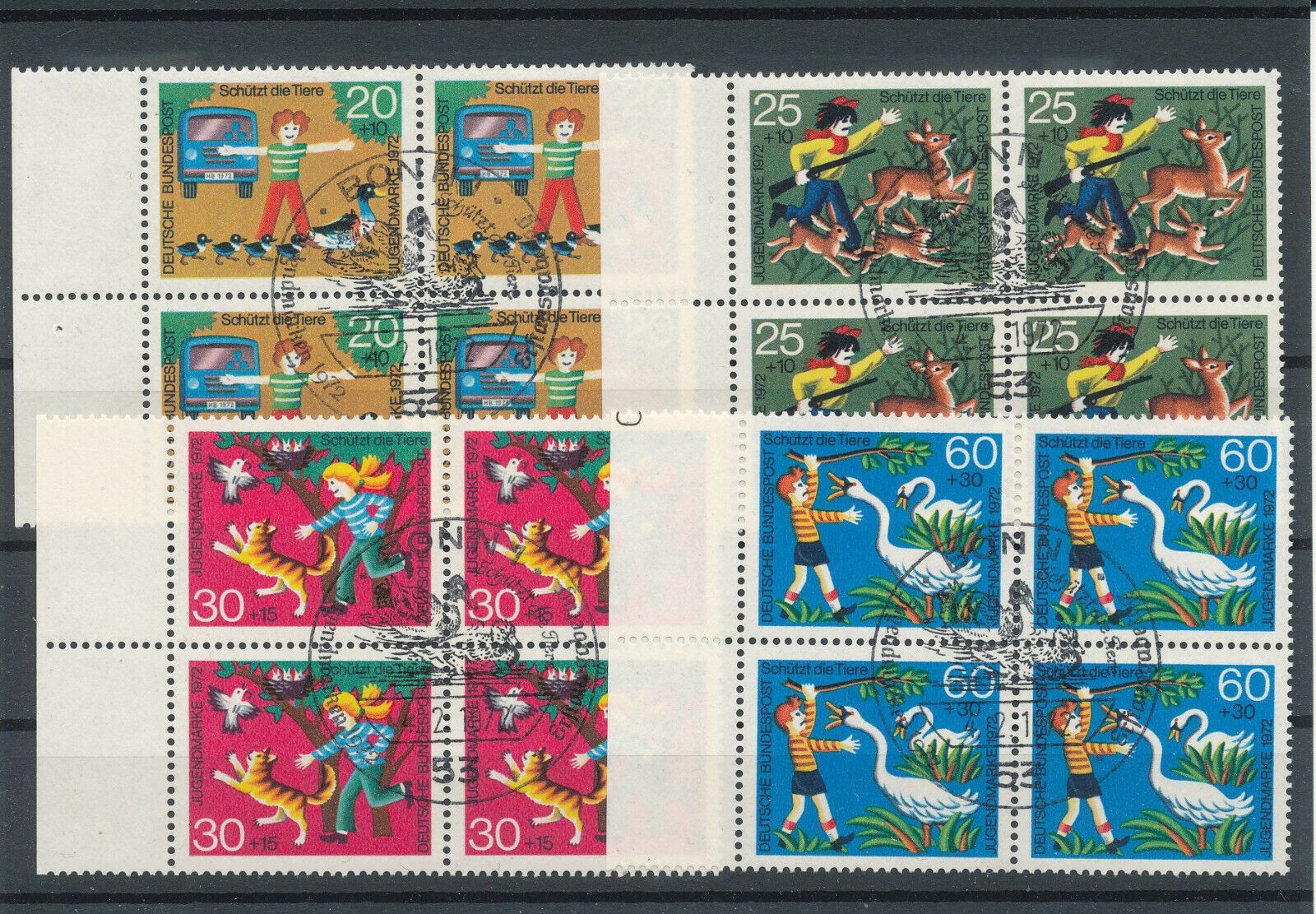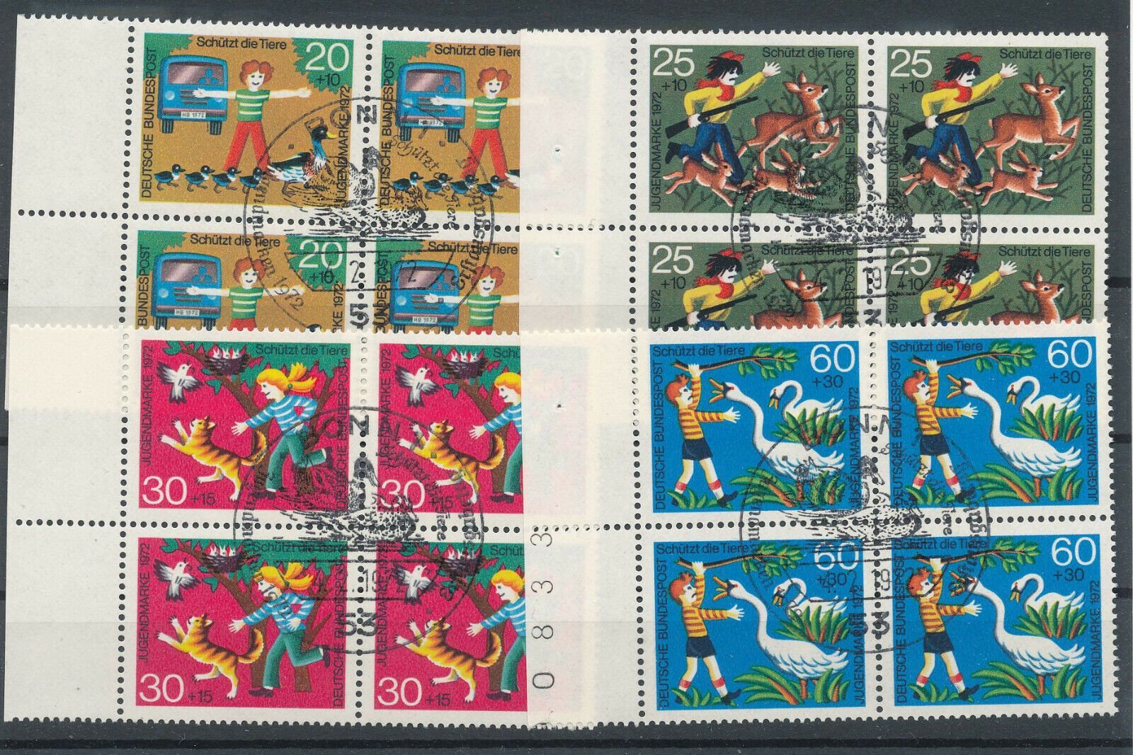 Auswahl: Bund Nr. 711/13, Viererblöcke mit Ränder und Ersttagsstempel, siehe B.