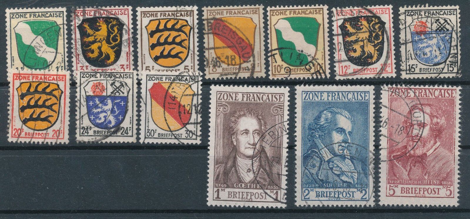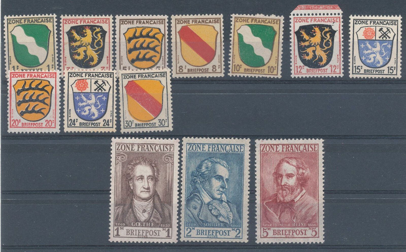 Auswahl: Franz. Zone Nr. 1/13, postfrisch/ gestempelt, siehe Bild, Auswahl.