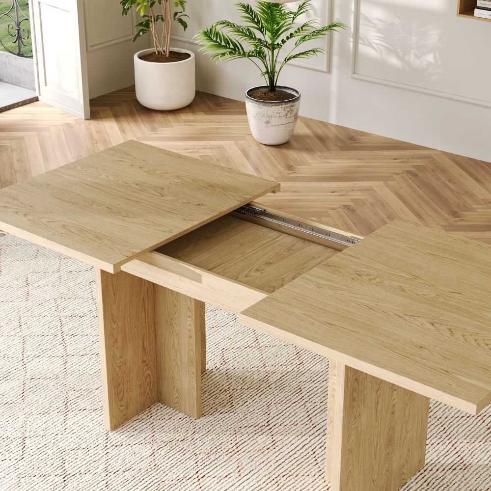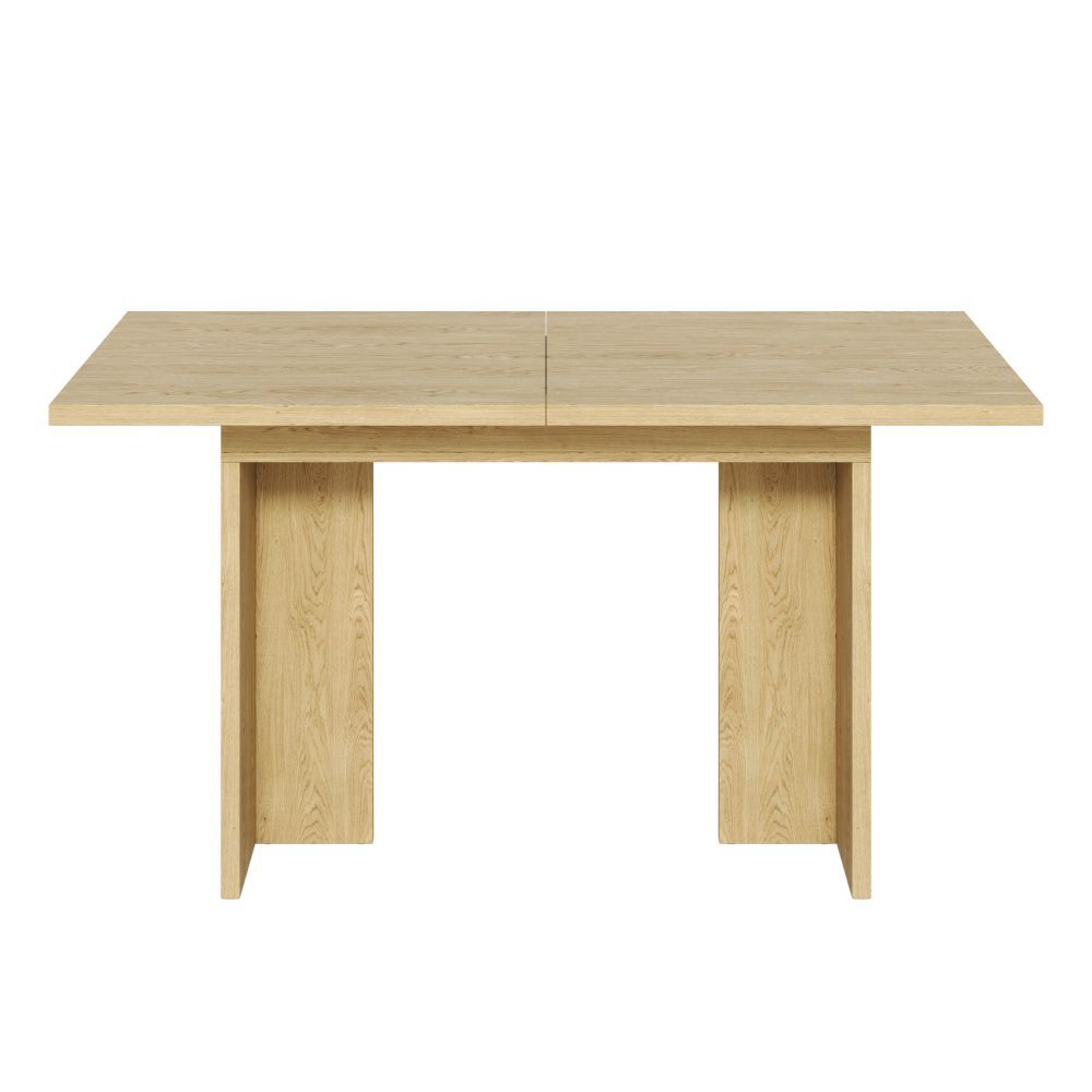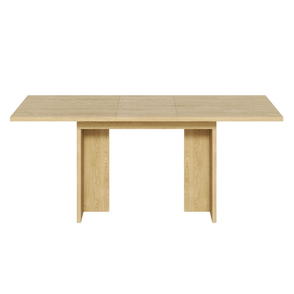 Ausziehbarer Tisch in Eichenfarbe aus MDF, rechteckig und ideal für Esszimmer, Küche oder Wohnzimmer. Die Tischplatte ist verdickt und das Design wirkt schlicht und modern. Maße: 140/180 x 80 x 75 cm. Geeignet für 6 bis 8 Personen. Gewicht: 36,25 kg.