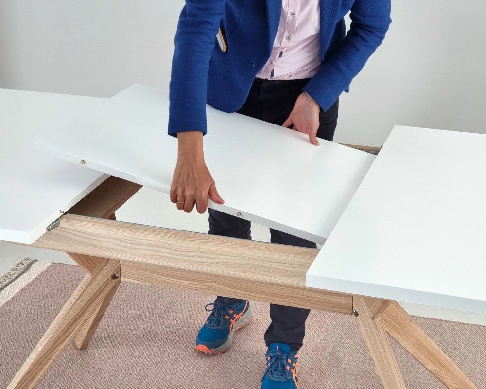 Dieser ausziehbare Esstisch BIJU der Firma Ragaba für 6-8 Personen ist eine praktische Wahl für dein Esszimmer oder Wohnzimmer