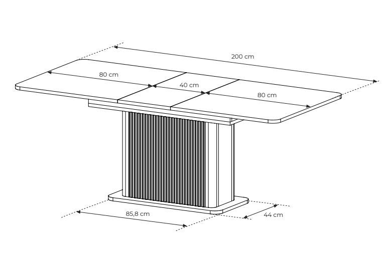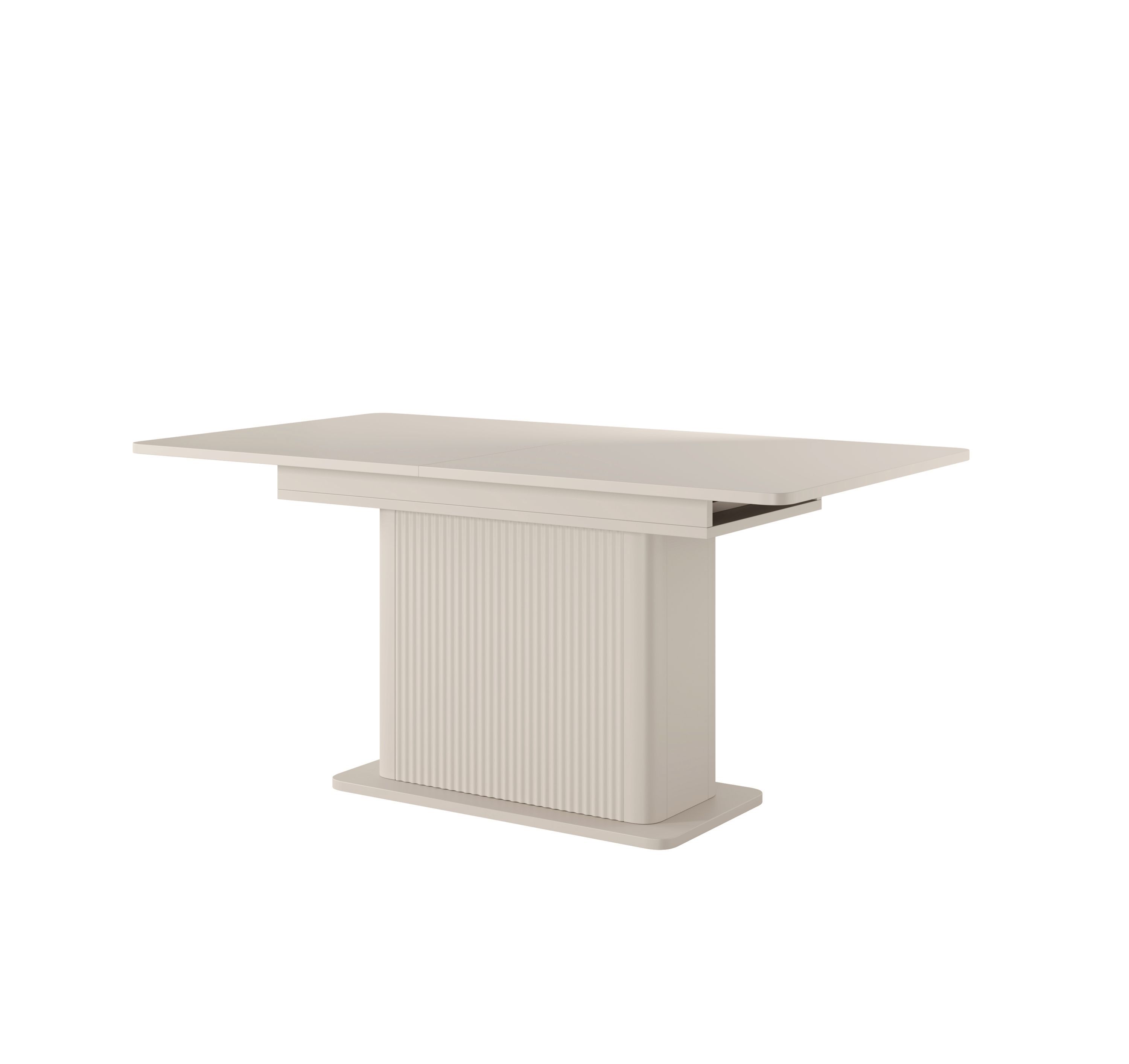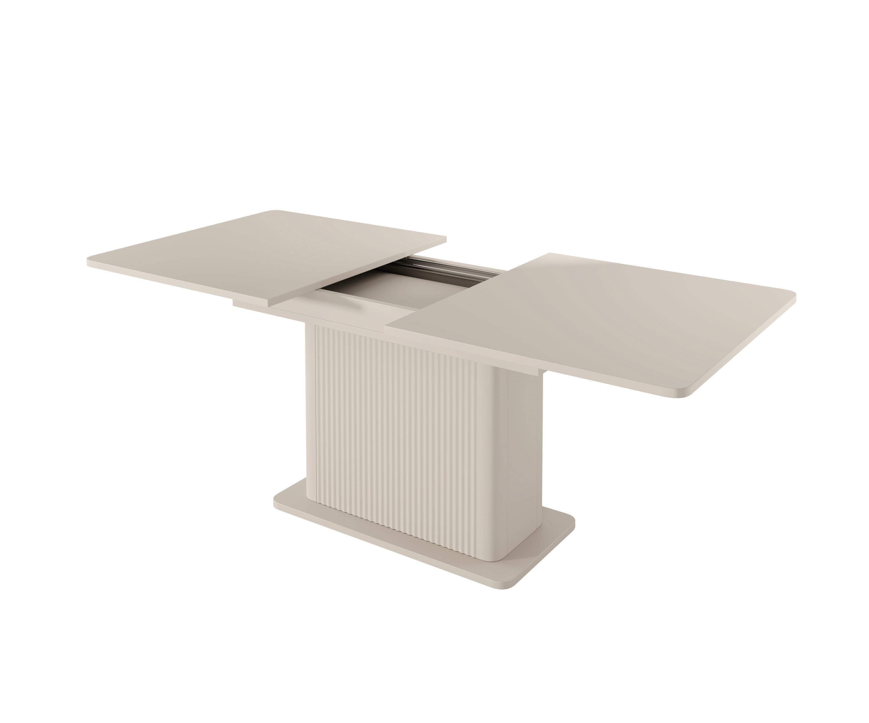 Ausziehbarer Esstisch Lante 160-200 cm – Beige / Kaschmir – Geriffelter Säulenfuß