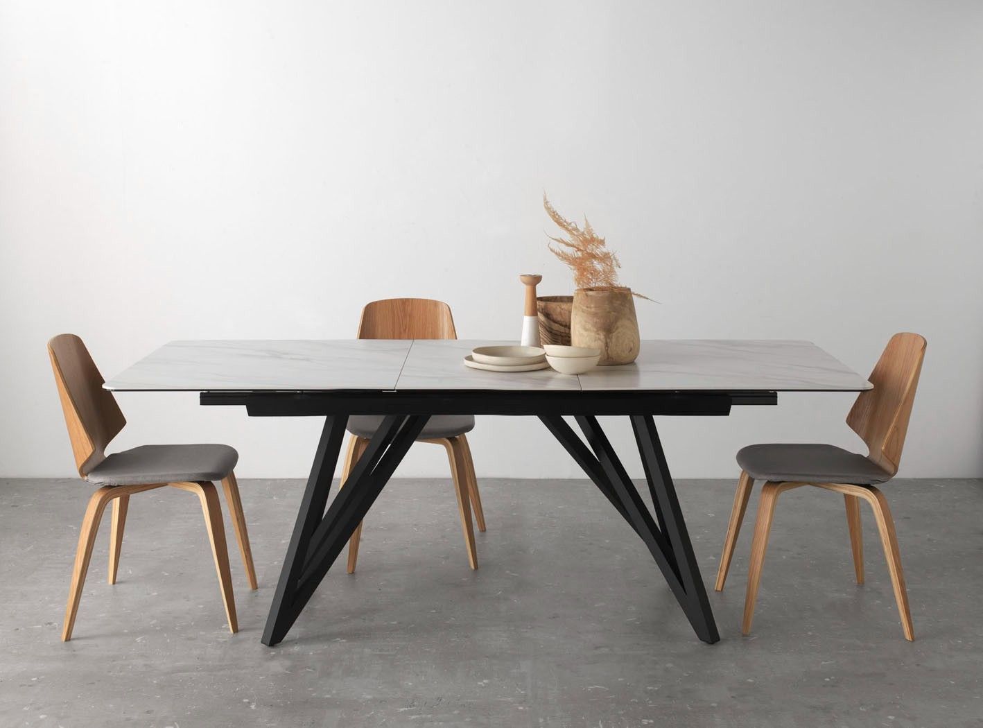 Ausziehbarer Keramiktisch mit Metallbeine 160/210x90, eiß