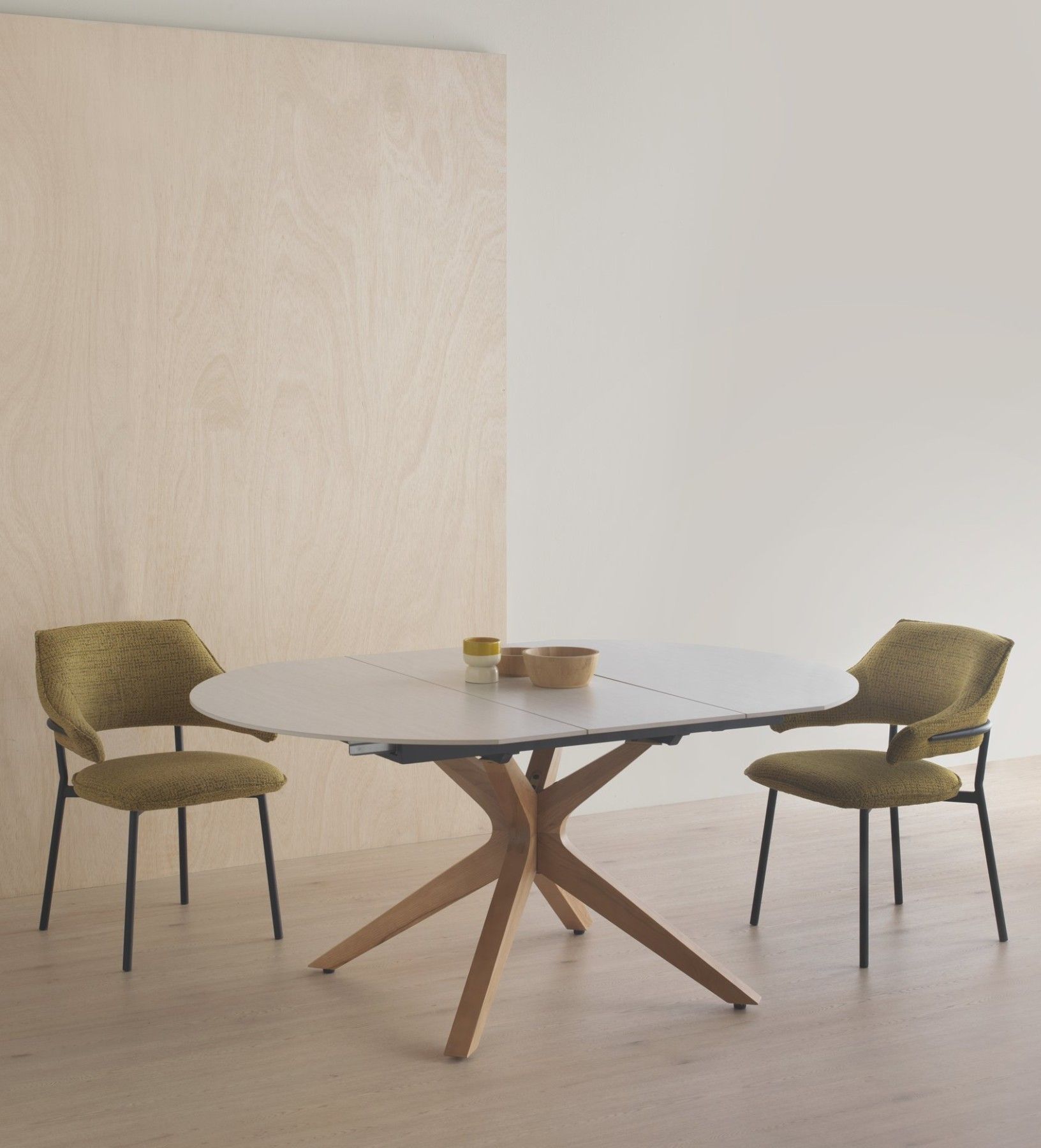Ausziehbarer Tisch mit Eichenholzbeinen und Keramikplatte 120/160x90