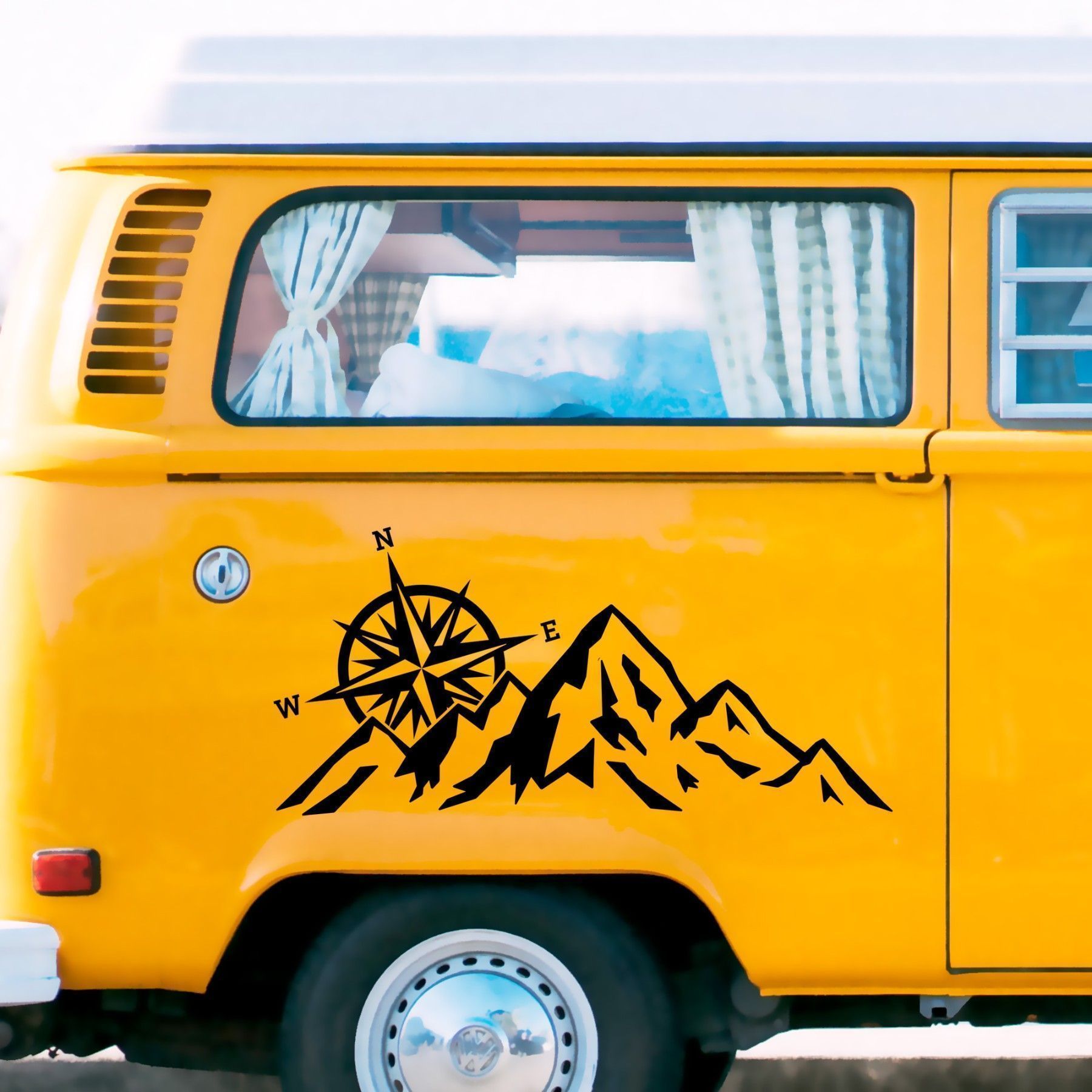 Auto Aufkleber "Berge Kompass" Camper Wohnmobil Van Vinyl Sticker #0350