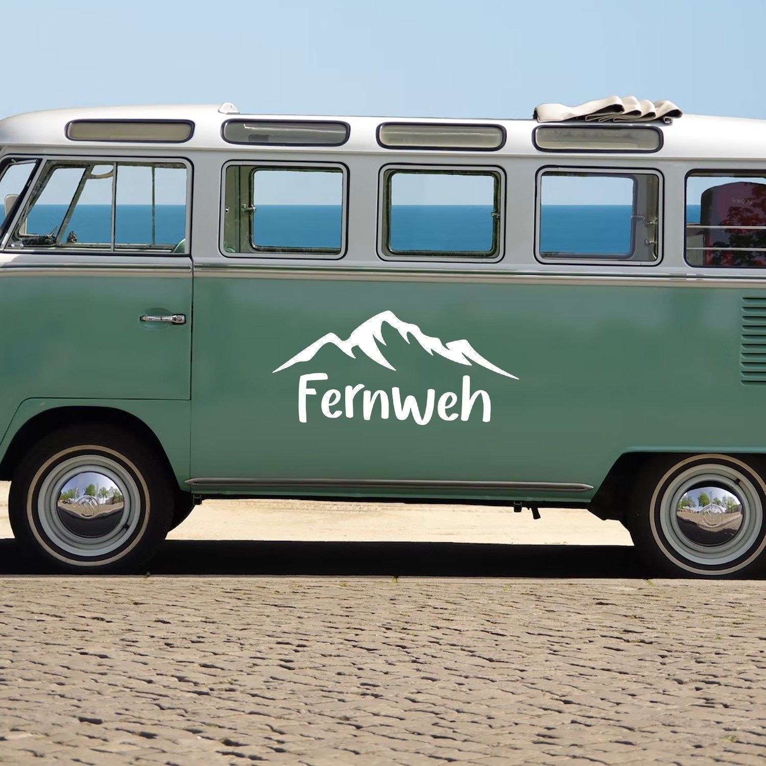 Auto Aufkleber "Fernweh" Berge Camper Urlaub Wohnwagen Vinyl Sticker #0207
