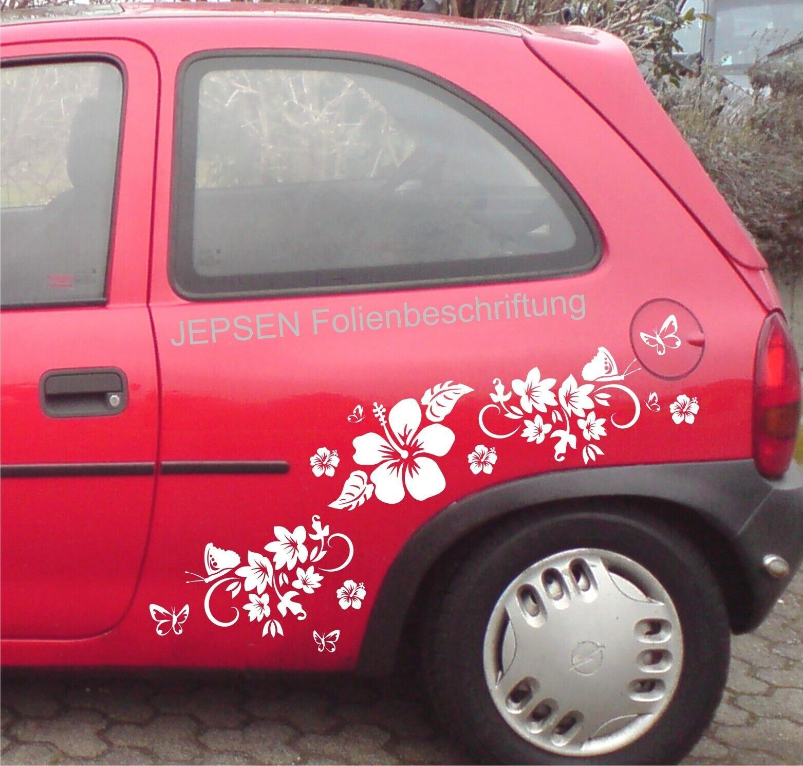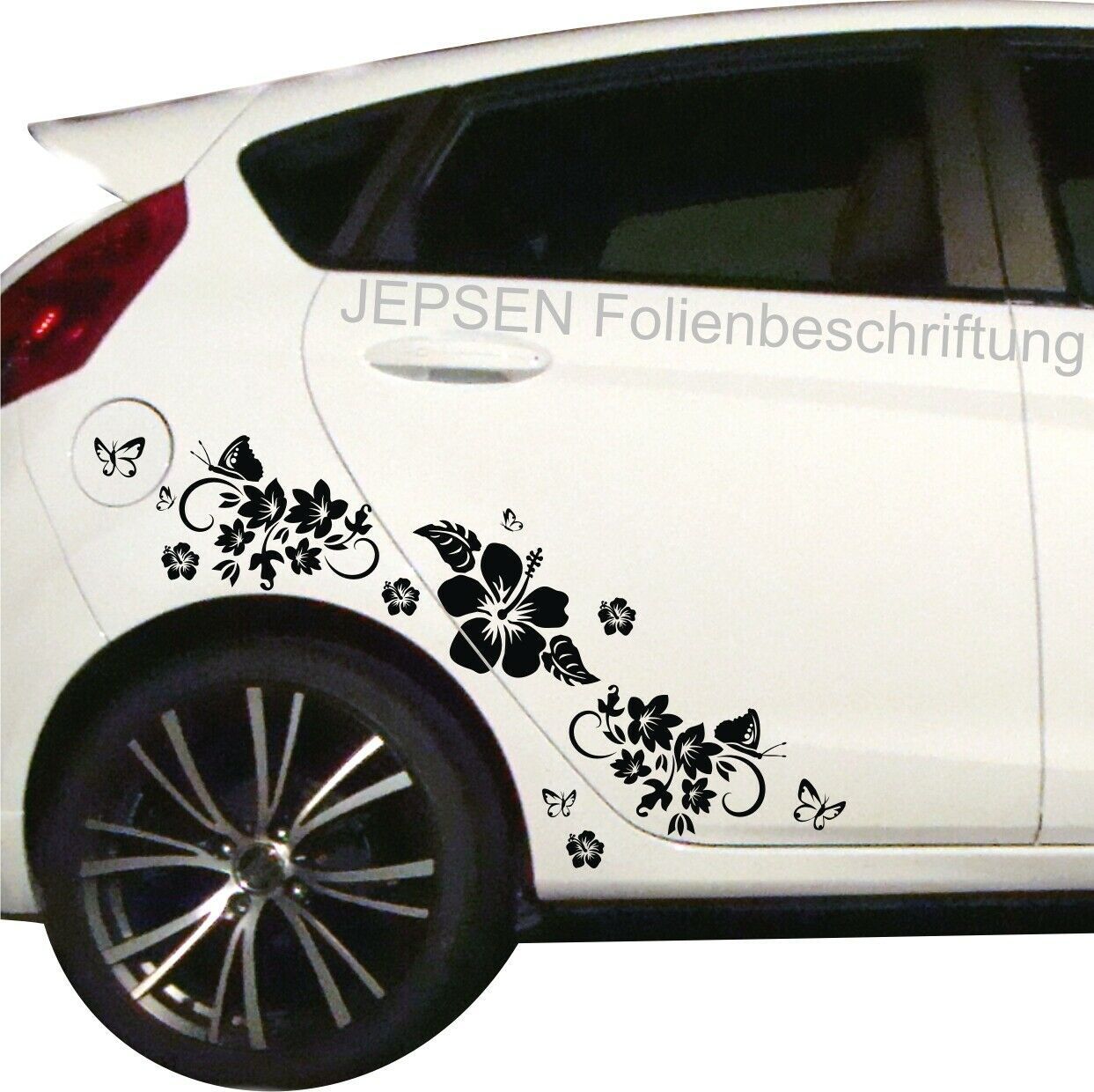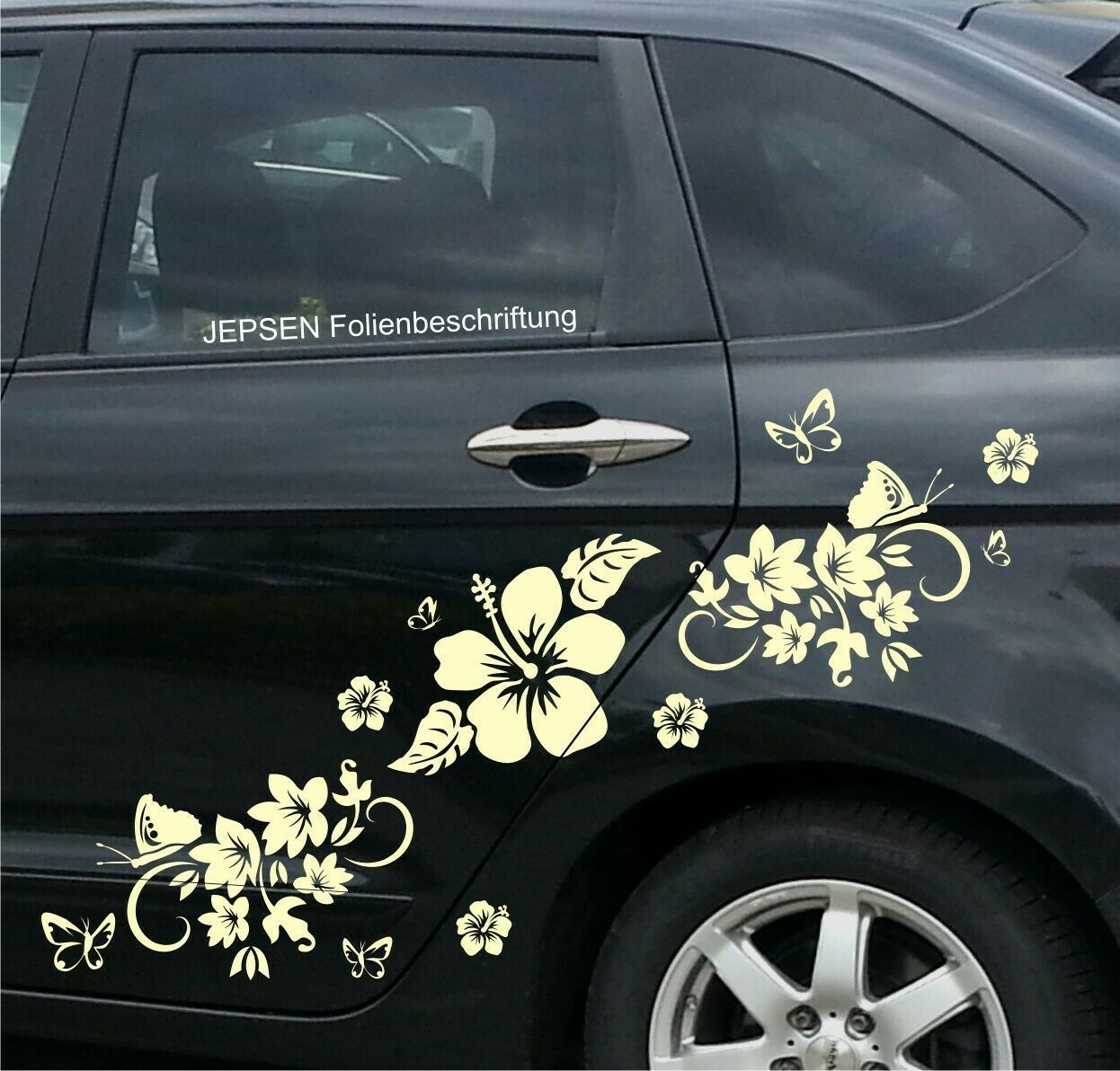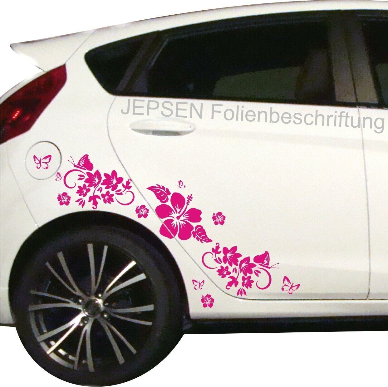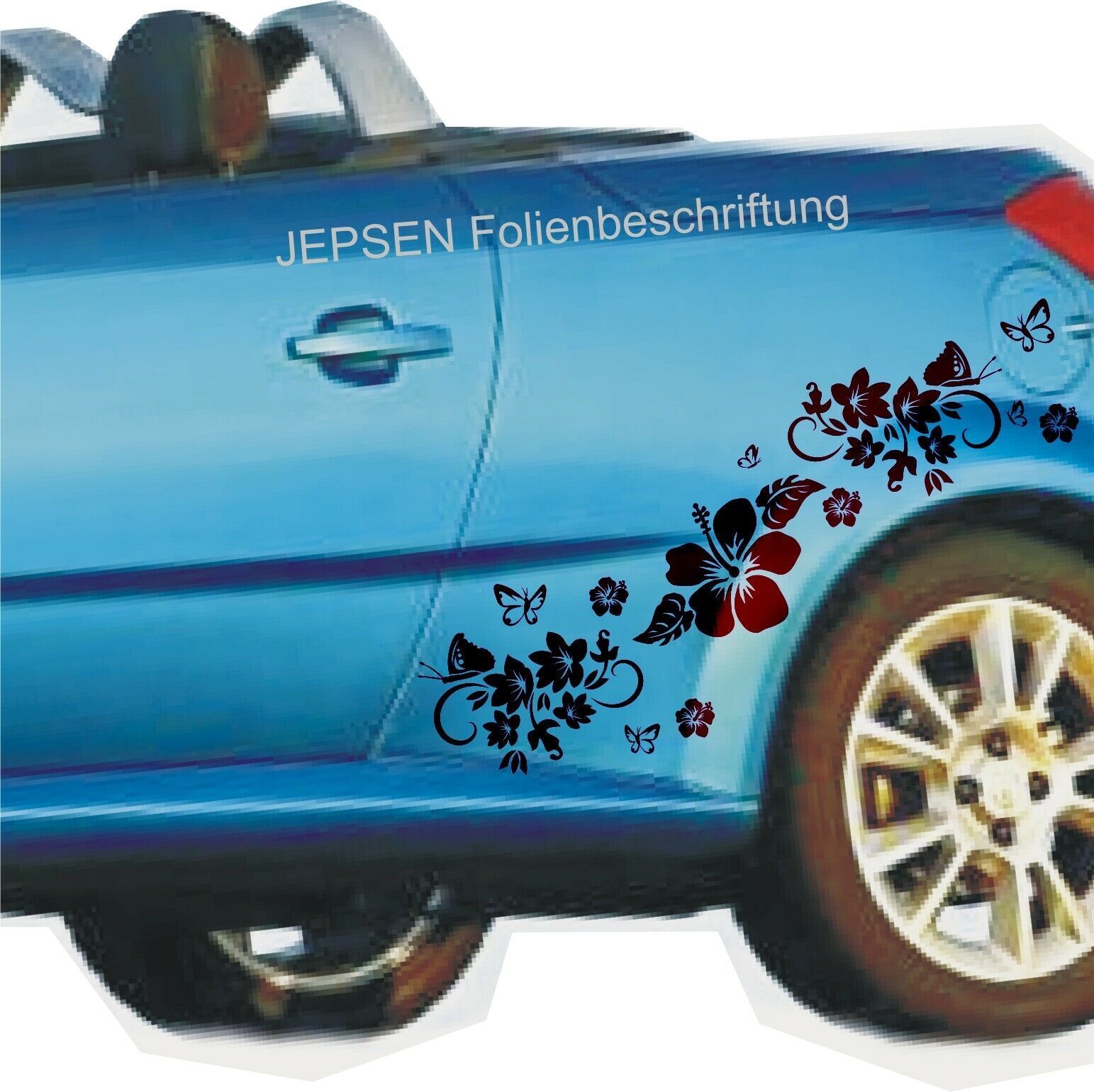 Auto Aufkleber Set C49 ML oder MR Farbwahl Schmetterlinge Blumen Hibiskus Blüten