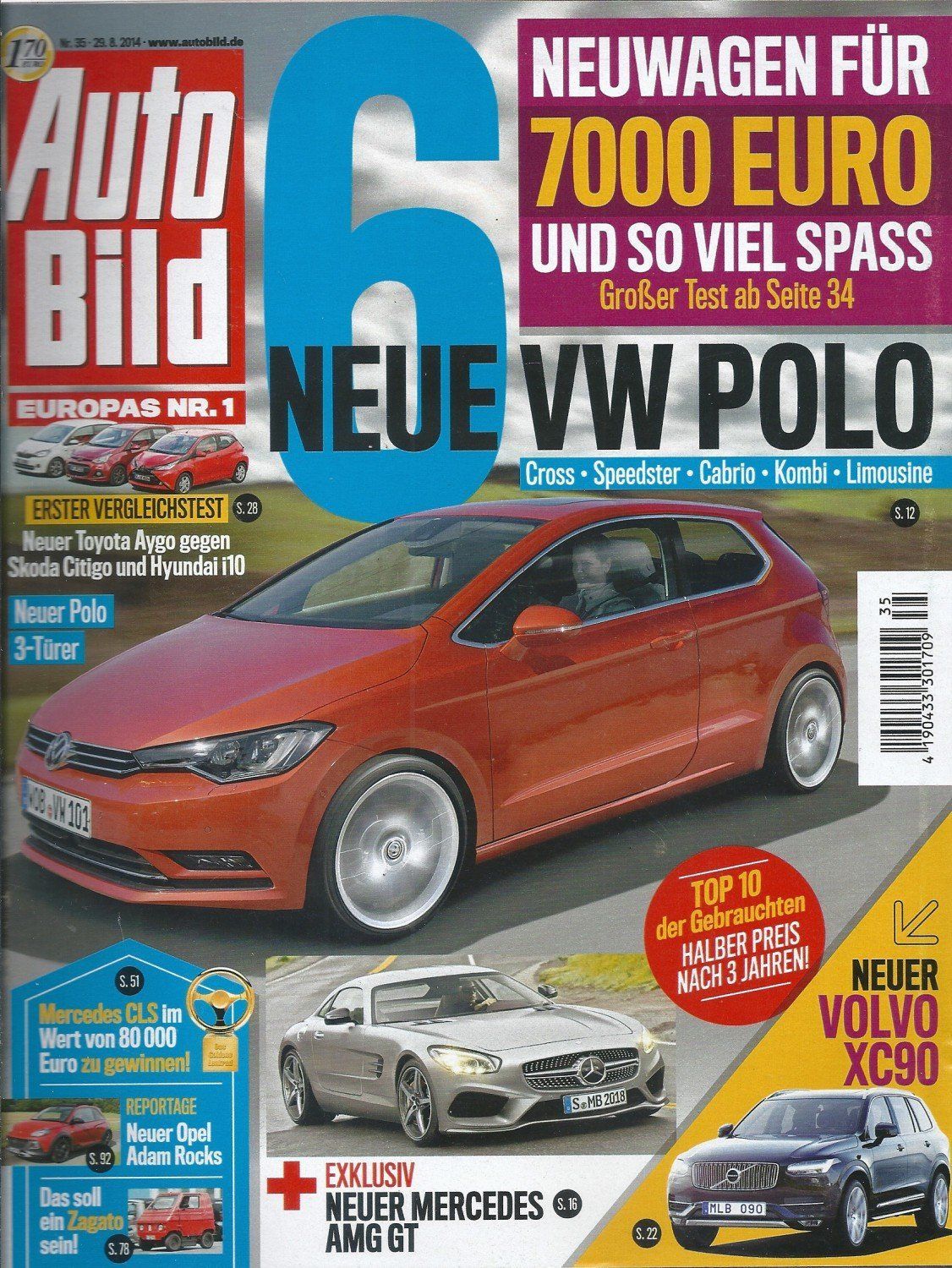 Auto Bild Nr. 35 - 29.08.2014 - 6 neue VW POLO Cross-Speedster-Cabrio-Kombi-Limosine