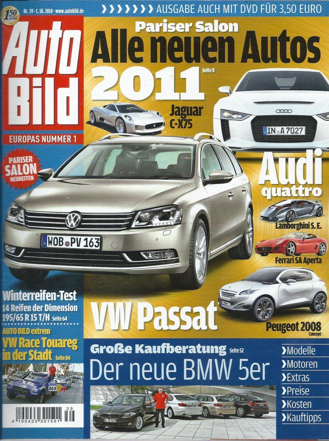 Auto Bild Nr. 39 - 01.19.2010 Alle neuen Autos 2011 Jaguar C-X75 Audi quattro VW Pass
