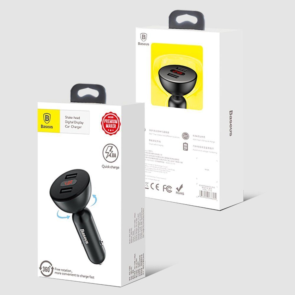 Baseus Auto KFZ PKW Ladegerät mit LCD-Anzeige Voltmeter 4.8A Smartphones & Tablet schwarz