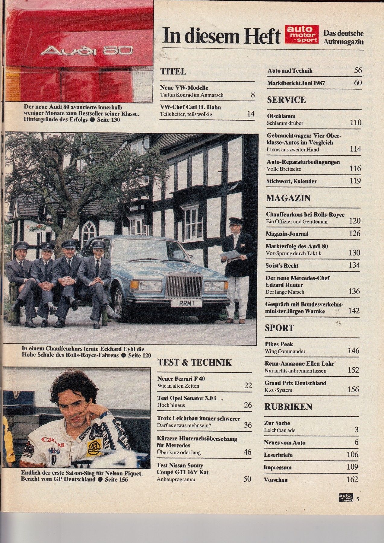 auto motor und sport Heft 16 - 1. August 1987 VW 1988 - neuer Passat, Golf, Corrado Ferrari Le Mans F40 Test: Opel Senator - Nissan Sunny 16V Sport: Pikes Peak - Ellen Lohr - GP Deutschland uvm... Mehr