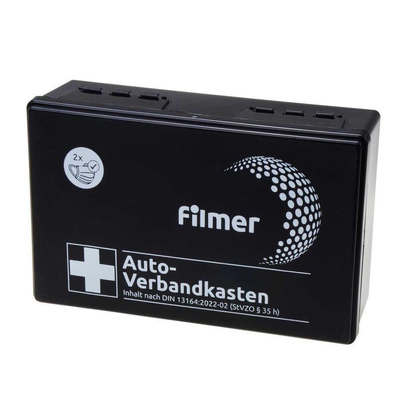 FILMER Auto Verbandkasten + 2 Masken KFZ Verbandsset Erste Hilfe Set DIN13164 2022-02