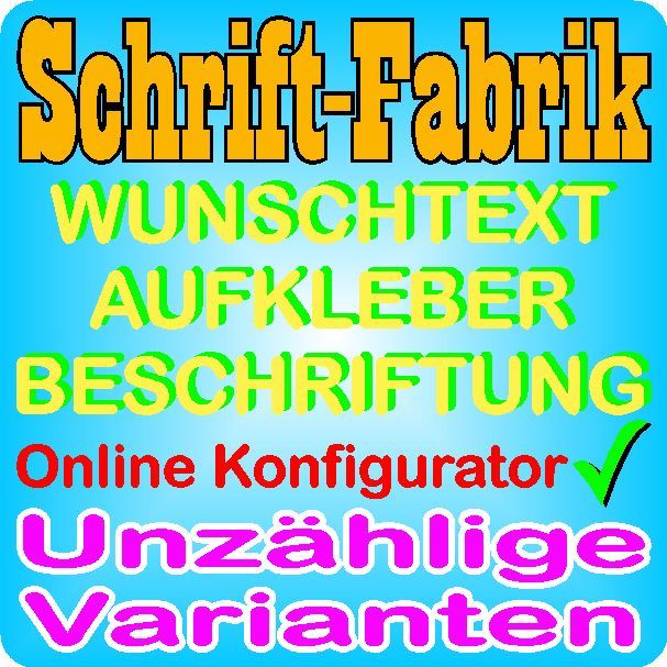 Wählen Sie aus einer breiten Palette von Schriftarten, Farben und Größen - WUNSCHTEXT - MOTIV - AUFKLEBER HIER SELBST GESTALTEN Unzählige Auswahl an Varianten mit Vorschaufunktion! Wir sind Ihre Quelle für günstige Aufkleber und Beschriftungen nach Wunsch und Maß! Dieses Angebot gilt nur in Verbindu