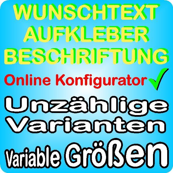 Wählen Sie aus einer breiten Palette von Schriftarten, Farben und Größen - WUNSCHTEXT - MOTIV - AUFKLEBER HIER SELBST GESTALTEN Unzählige Auswahl an Varianten mit Vorschaufunktion! Wir sind Ihre Quelle für günstige Aufkleber und Beschriftungen nach Wunsch und Maß! Dieses Angebot gilt nur in Verbindu