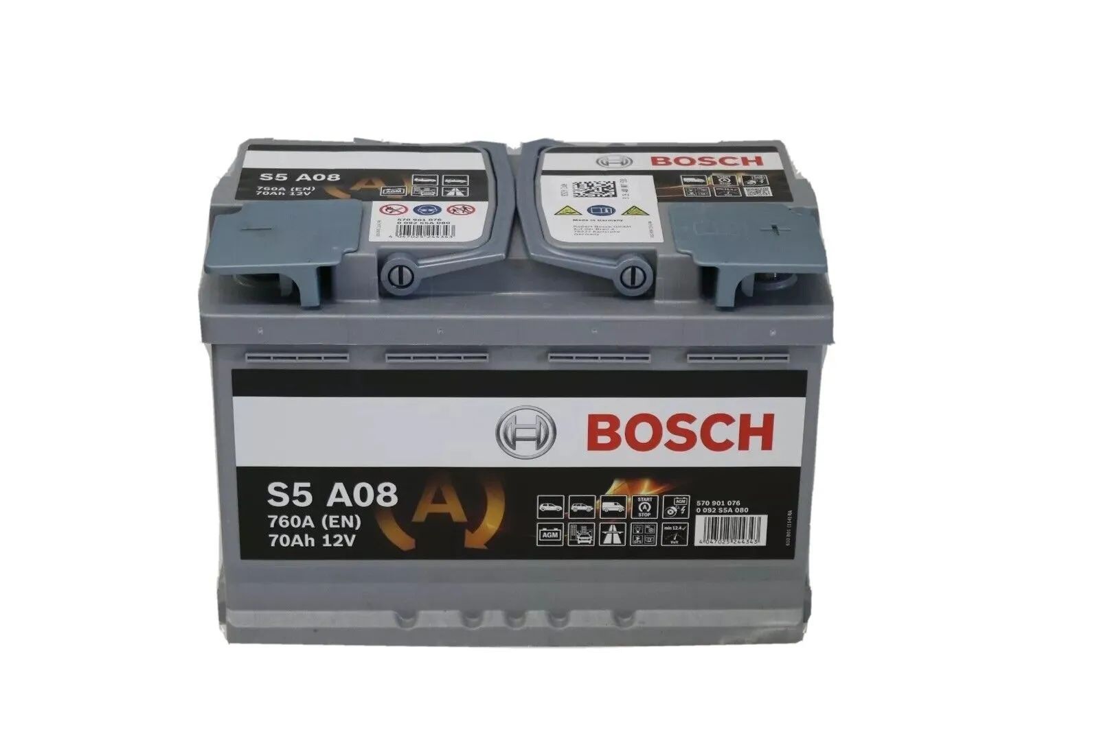 Autobatterie Bosch S5A08 Start-Stop 12V 70Ah 760A AGM Starterbatterie 0092S5A080