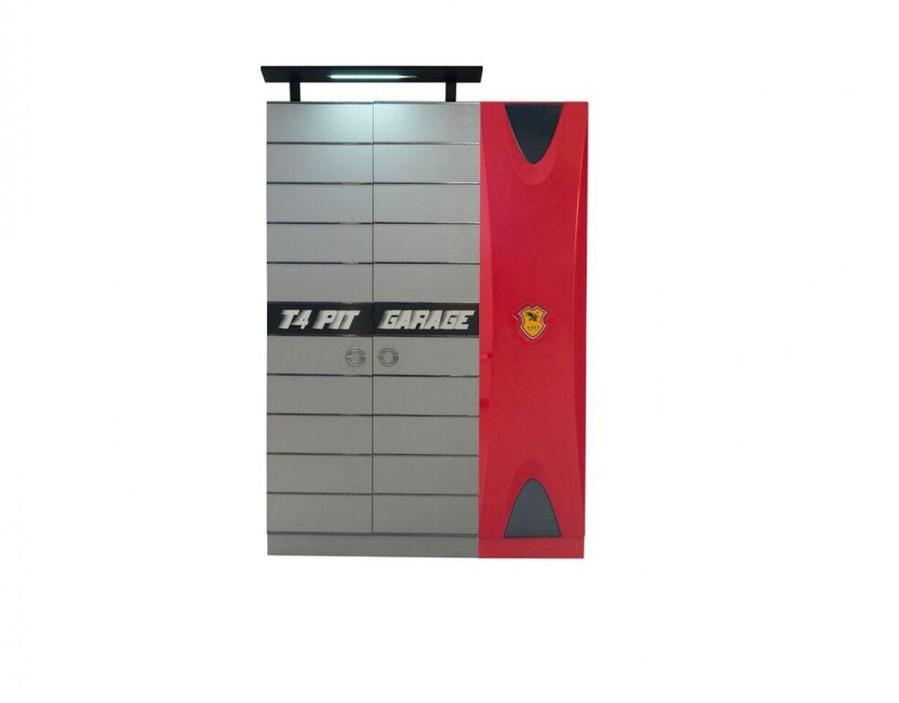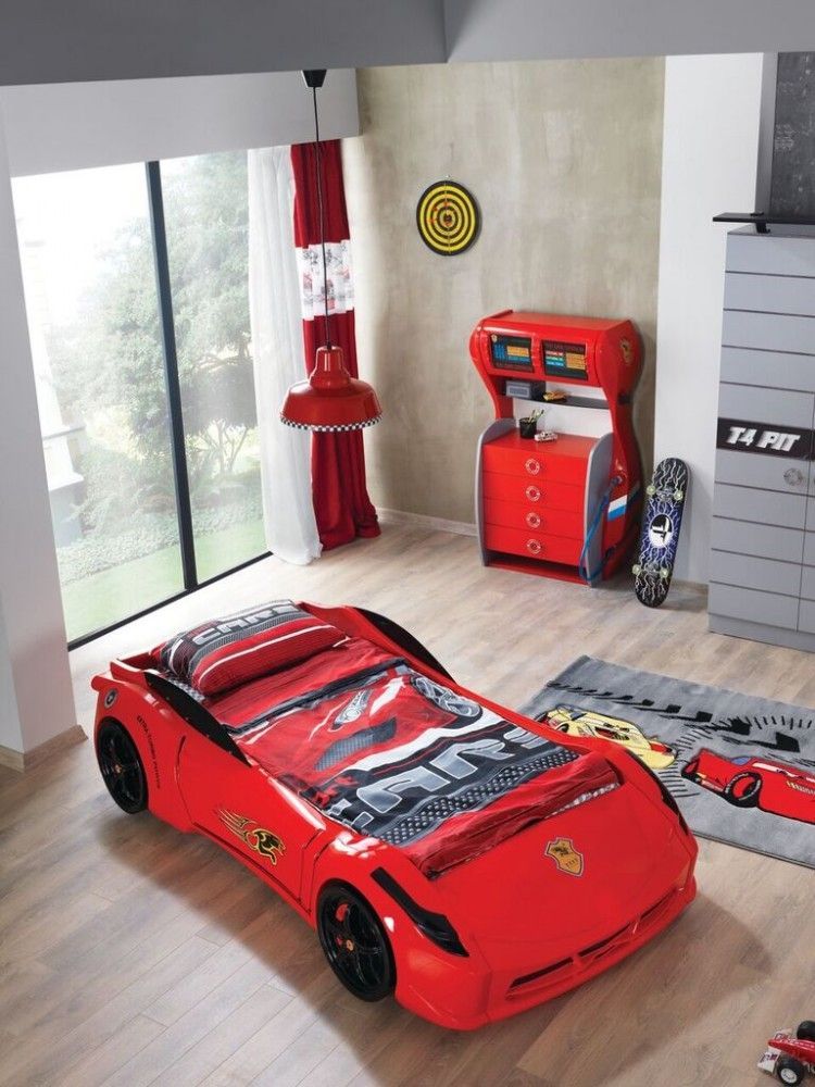 Autobett Kinderzimmer Garage in Rot für Autofans 7 Zonen Comfortschaum-Matratze ca.16cm Hoch GAR-KL3-ST-COMO-AUBE-SET-RS-2 Autobett Kinderzimmer Garage in Rot Im vierteiligen Autobett Jungenzimmer sind folgende Möbelstücke enthalten: Ein dreitüriger Kleiderschrank der auch als zweitüriger Wäscheschr