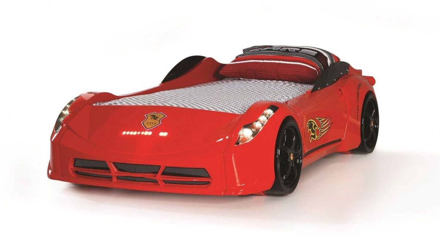 Autobett Kinderzimmer Garage in Rot für Autofans 7 Zonen Comfortschaum-Matratze ca.1