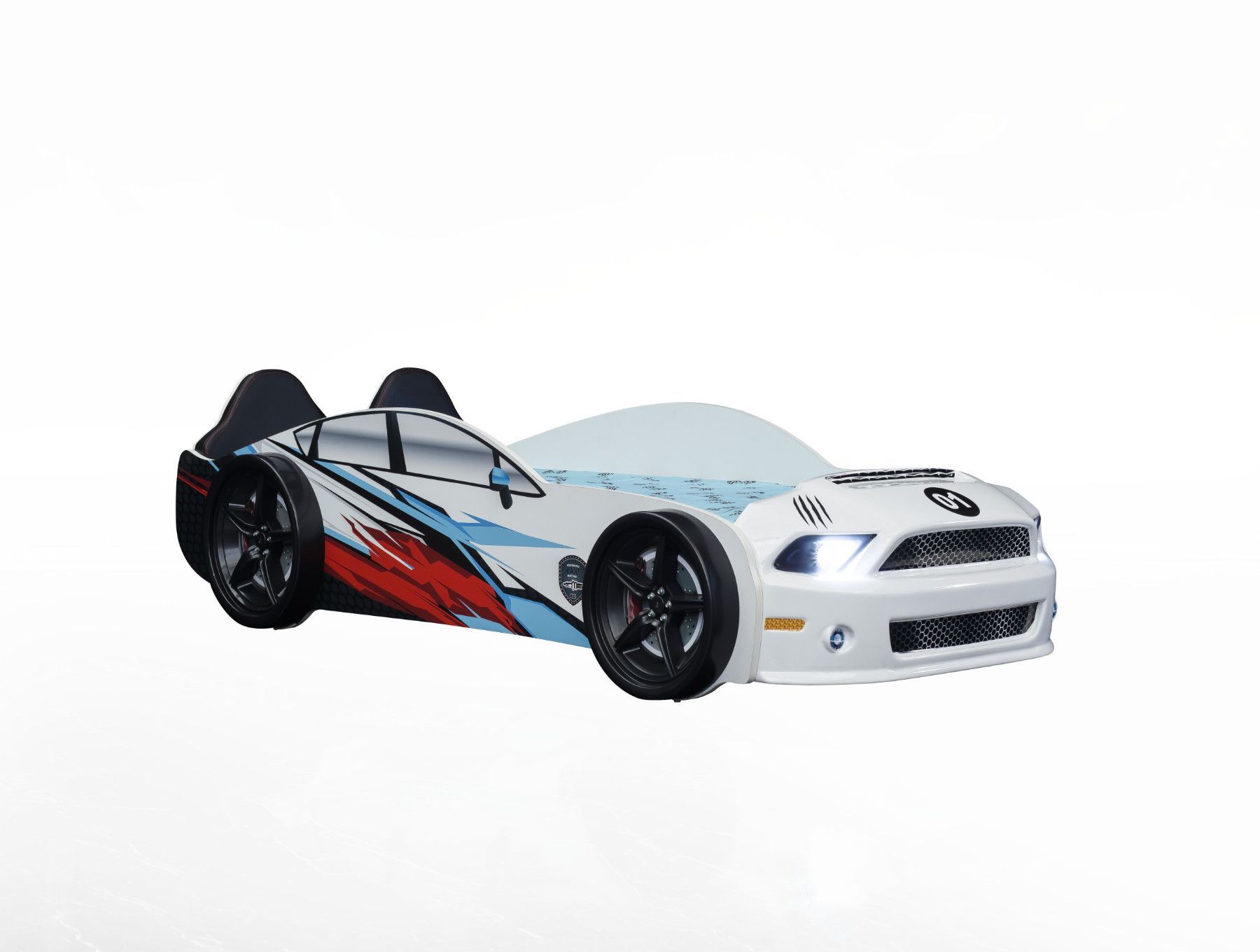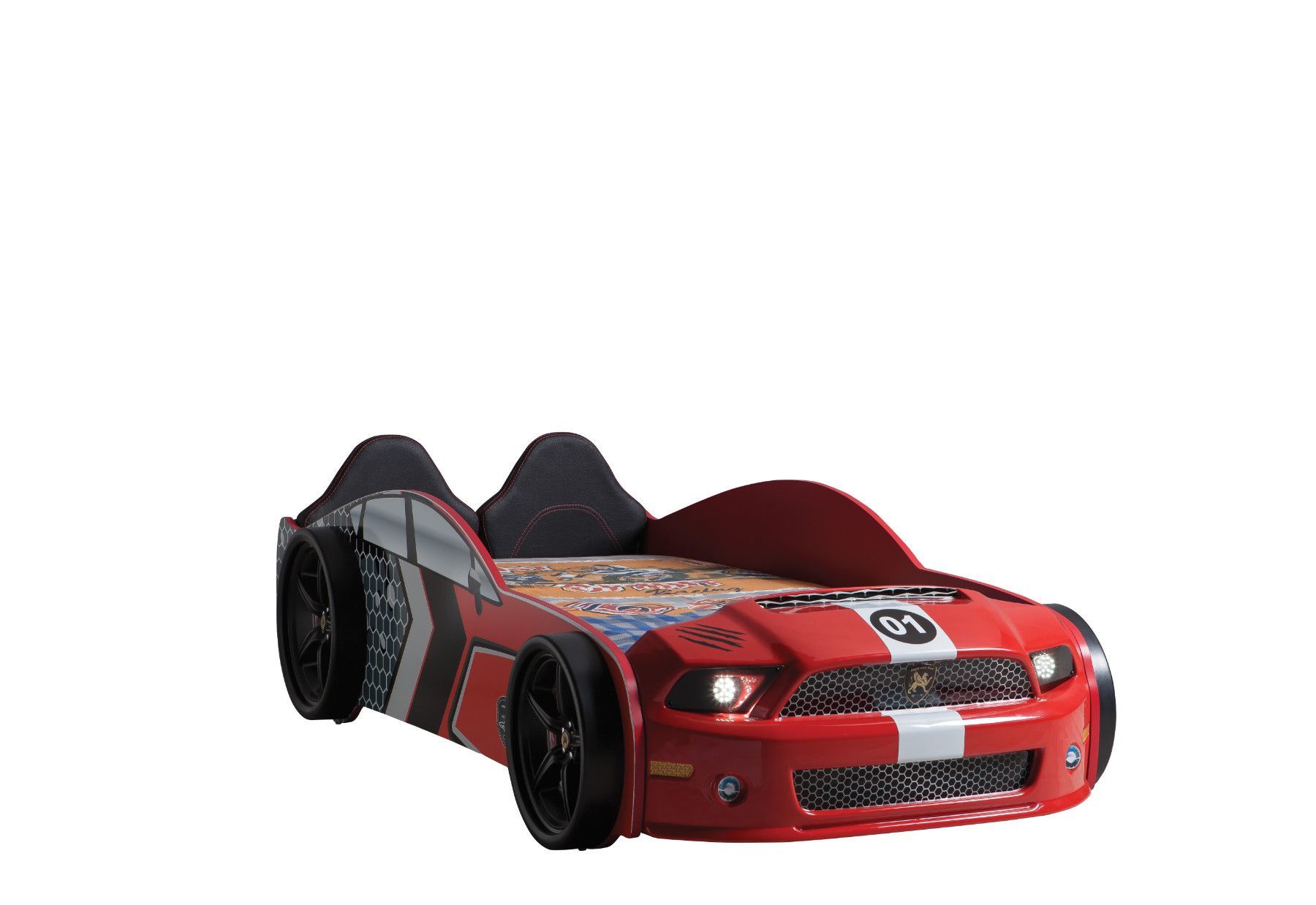Ein Autobett für alle Sportwagen-Fans absolutes Highlight für alle Kinder, die Autos lieben... Im Lieferumfang enthalten: 1x Autobett Muscle Bed inkl Lattenrost mit Funkfernbedienung inkl. LED beleuchtung an der Front inkl. Polsterung an Rückenlehne (Bezug Kunstleder) Außenmaße Länge: 235 cm x Breit
