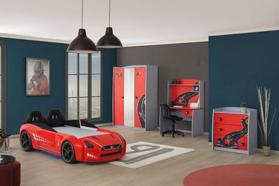 Autobett Kinderzimmer Turbo Formula GT-V 4-teilig in Rot mit LED