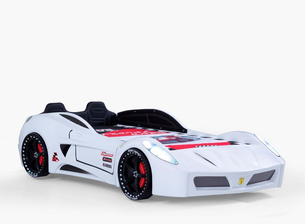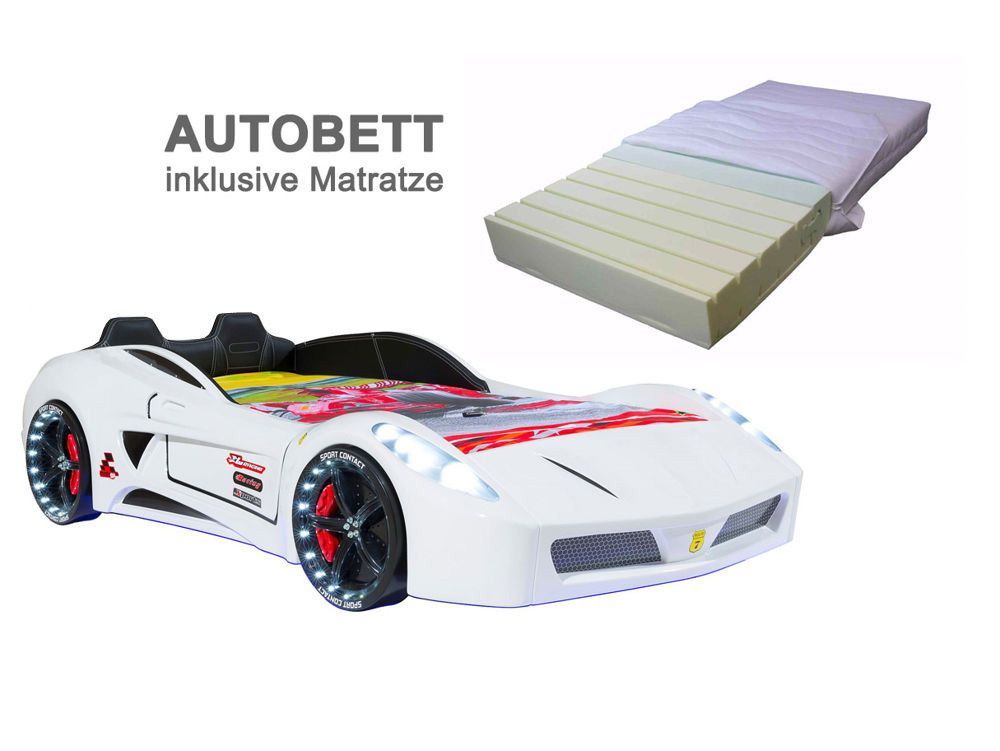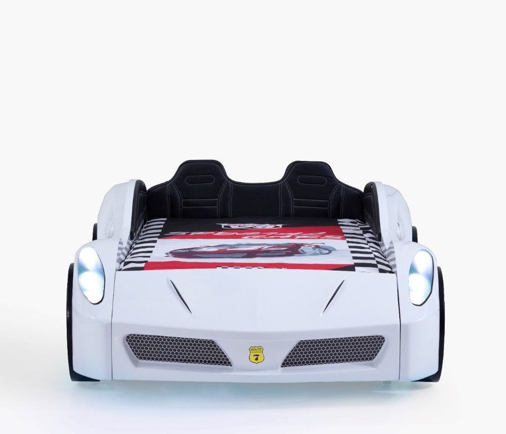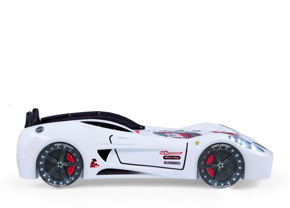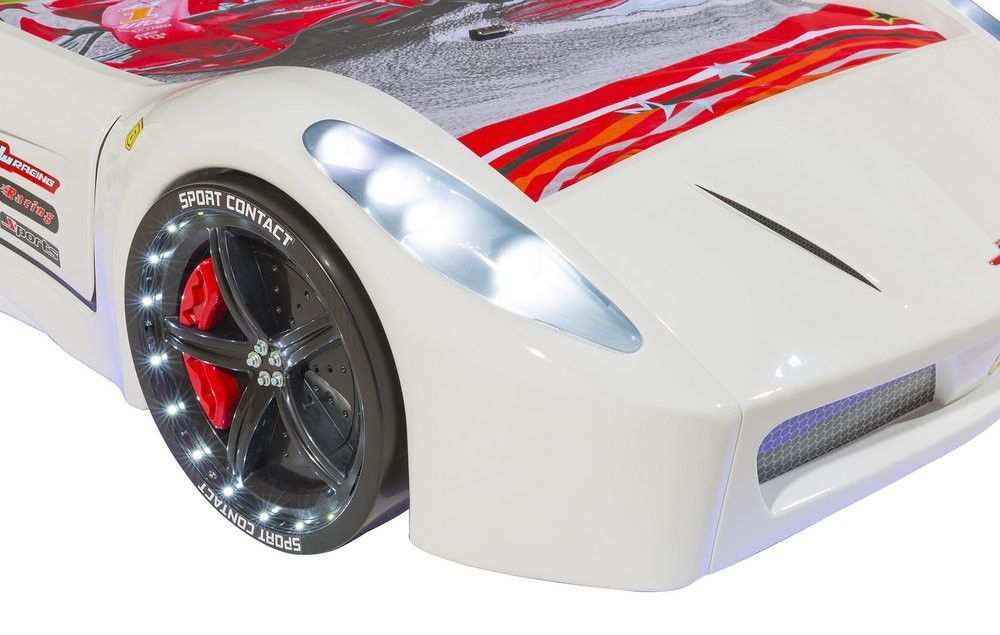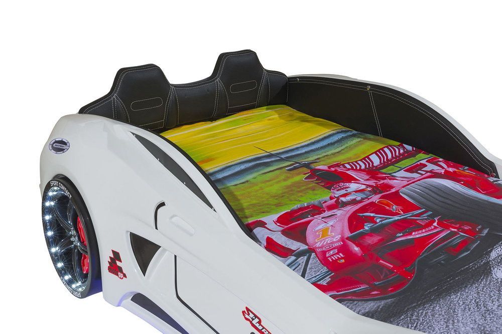 byMM Autobett TURBO V7 SPORT weiß Innenpolsterung Full Led Licht Kinderbett 90x190