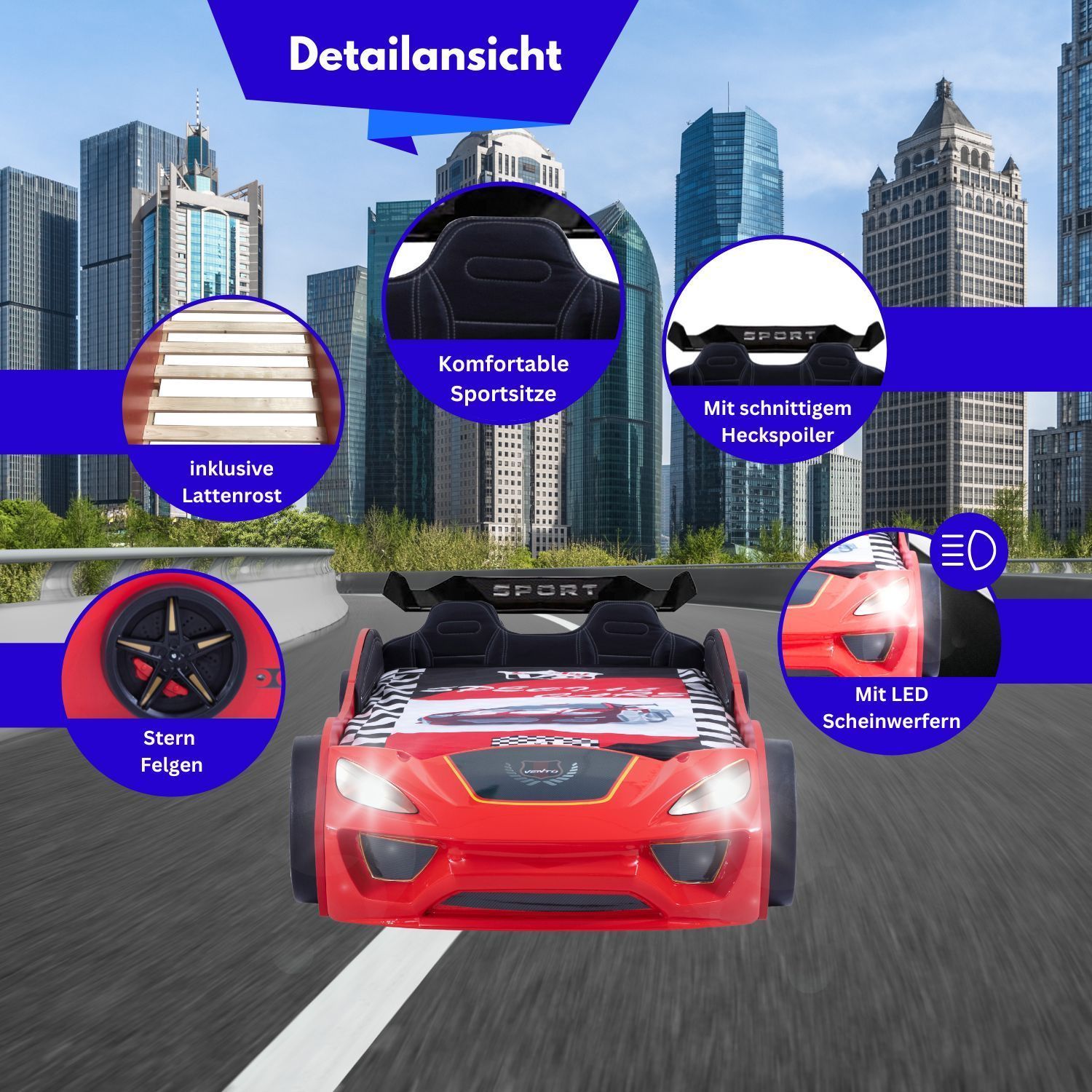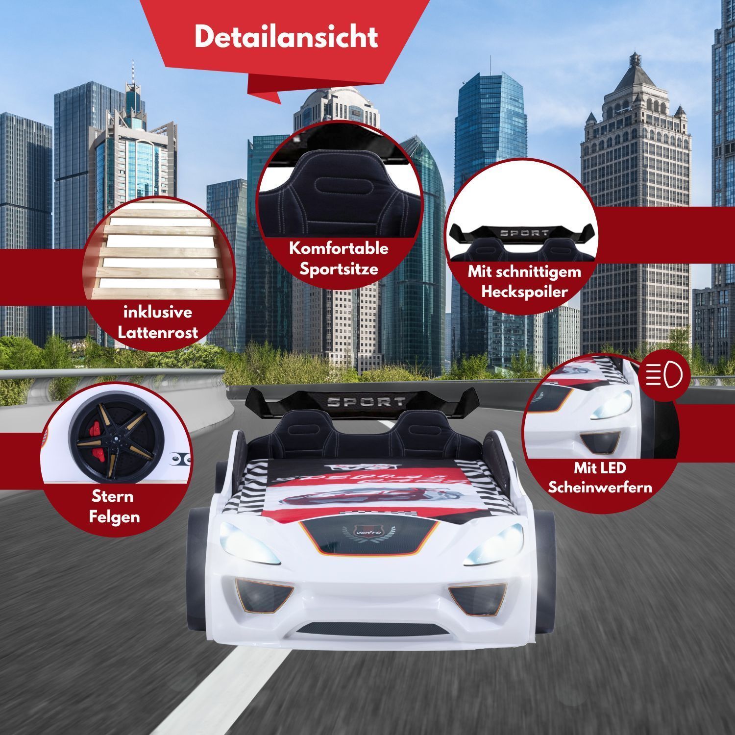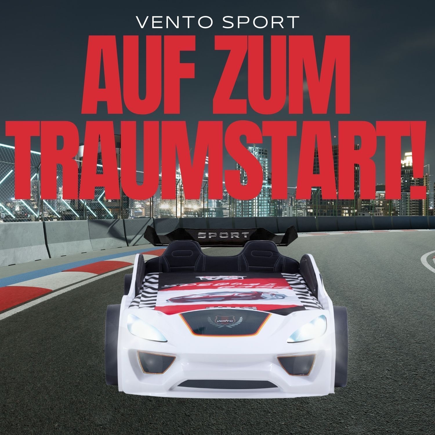 Autobett VENTO SPORT Kinderbett im Rennwagen-Design mit Lattenrost + Sportpack