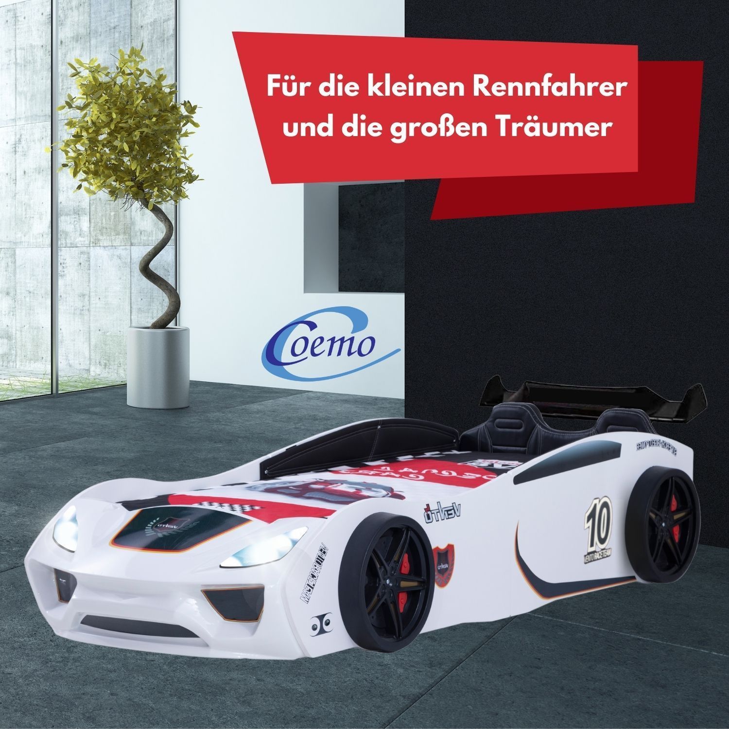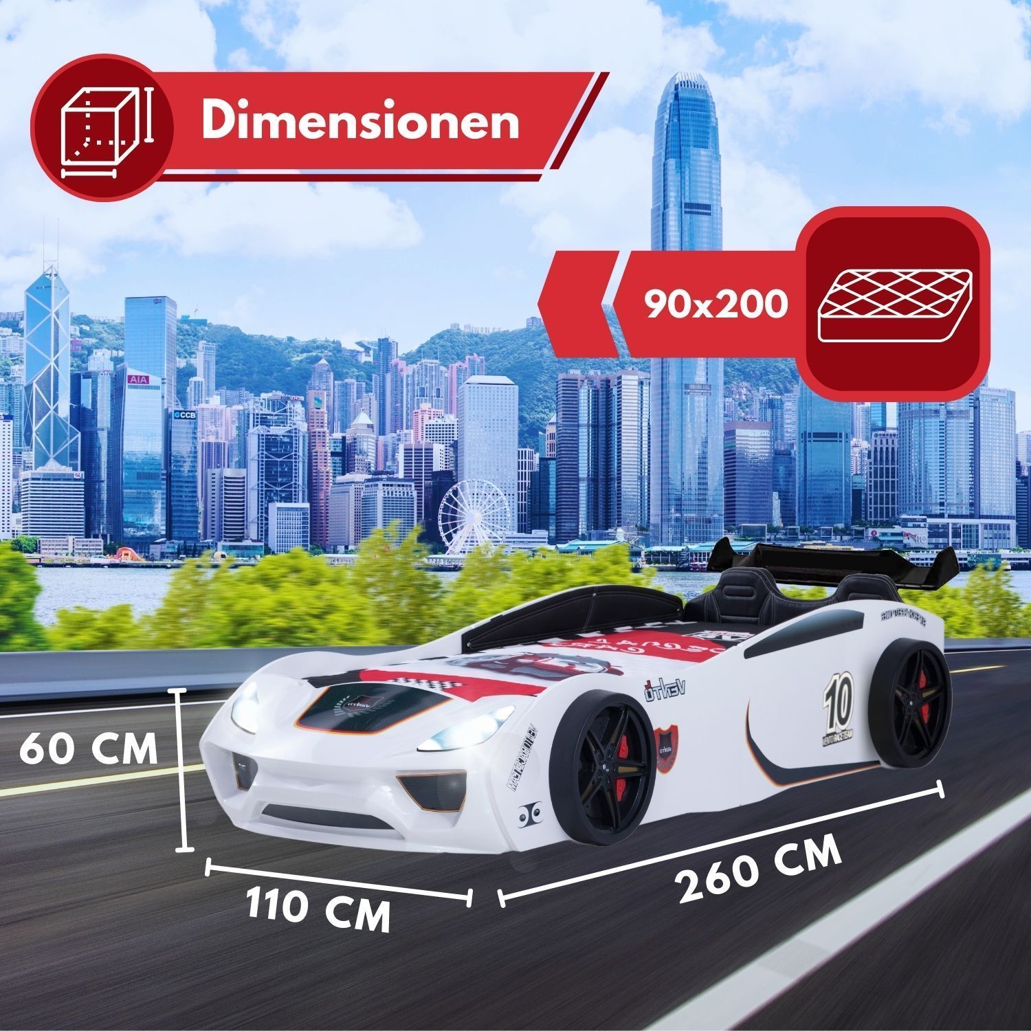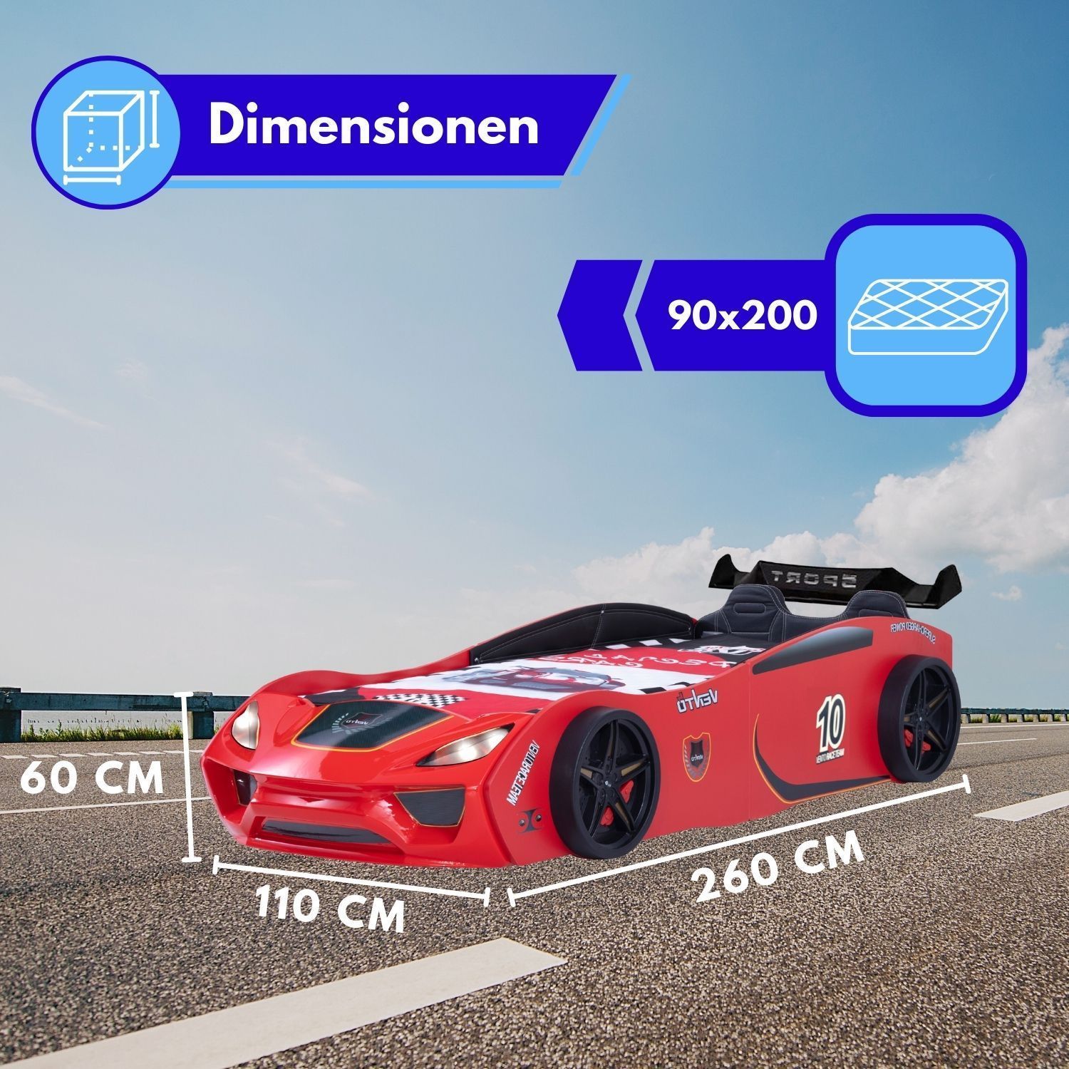 Autobett VENTO SPORT Kinderbett im Rennwagen-Design mit Lattenrost + Sportpack