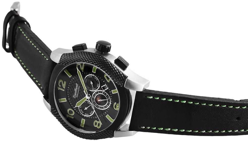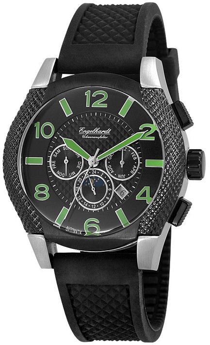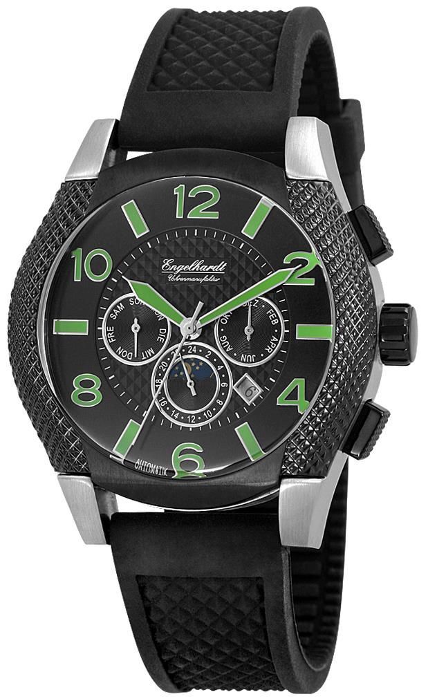 Automatik Herrenuhr Kautschukarmband schwarz grüne Ziffern 5 ATM Monats-/ 24 Std