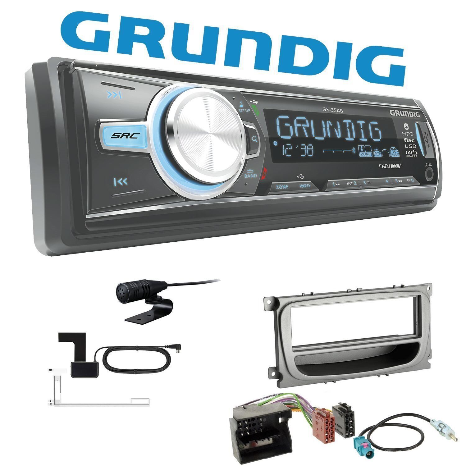 Autoradio Grundig für Ford Mondeo IV 2007-2014 silber Bluetooth DAB+ USB AUX