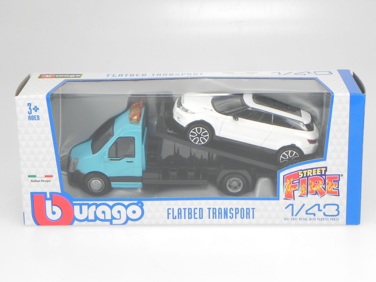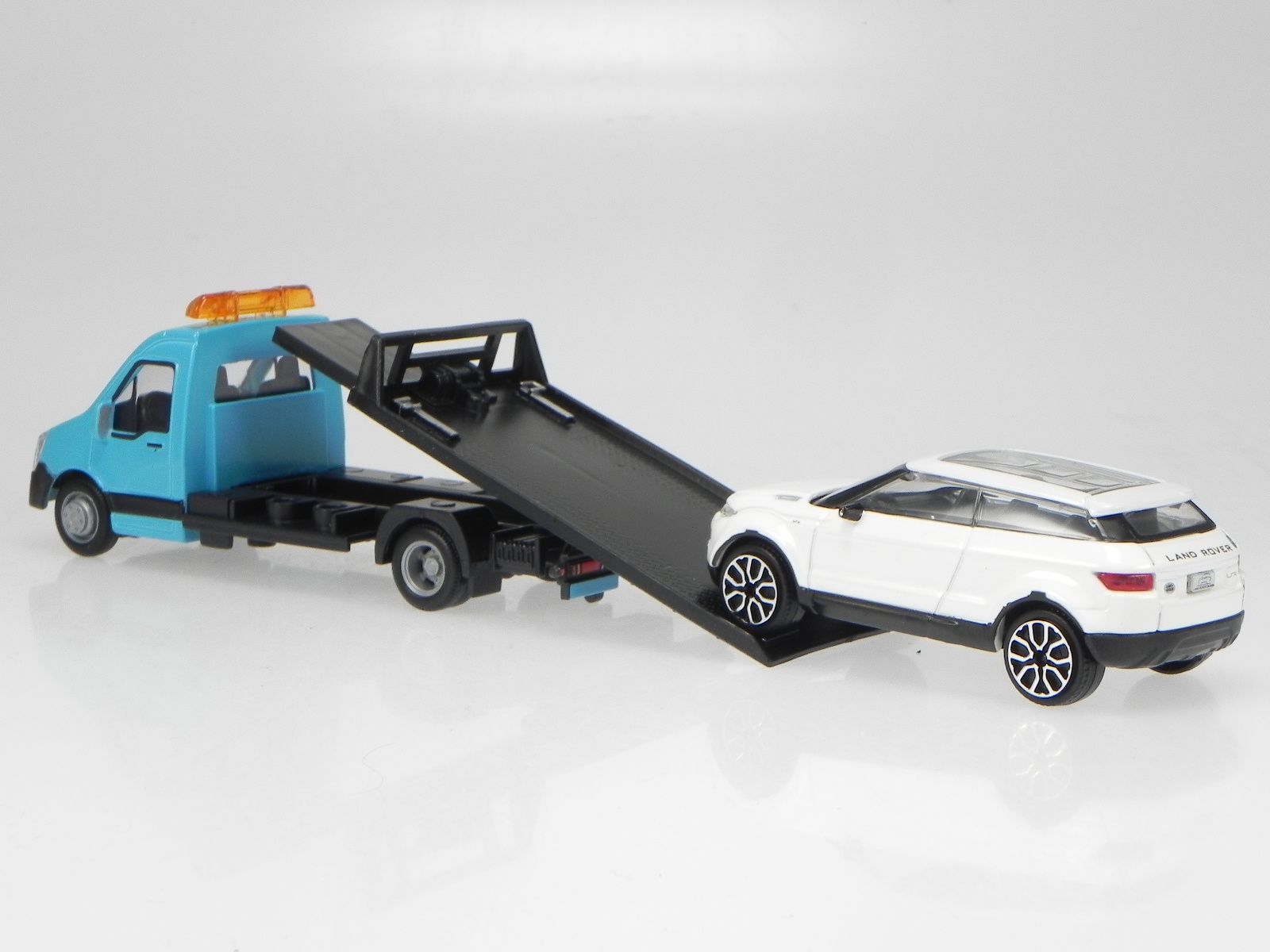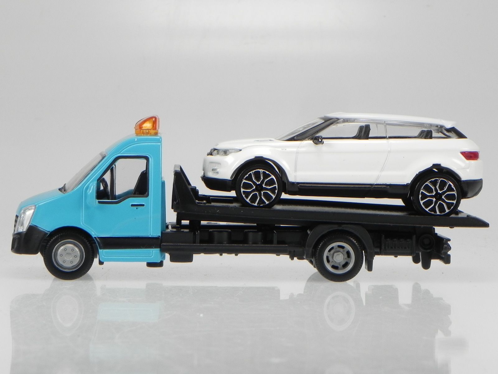 Autotransporter Abschleppwagen blau + Evoque Modellauto Bburago 1:43