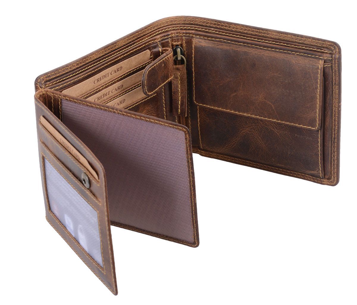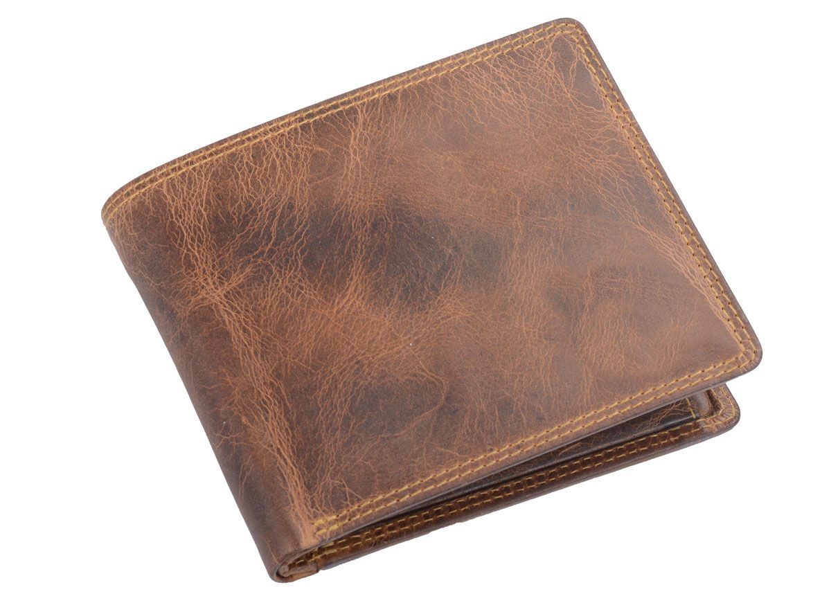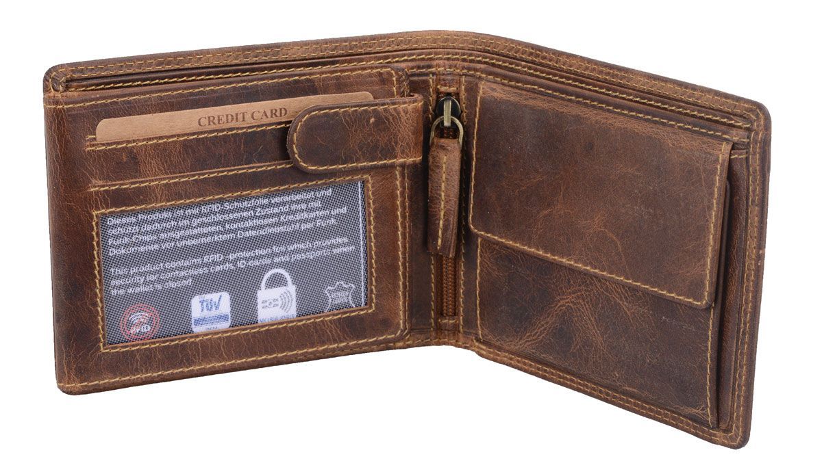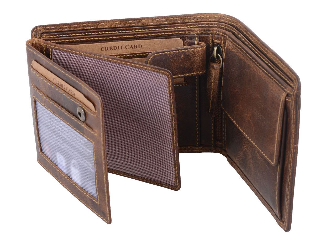 AVANCO Echtleder-Scheintasche braun mit Lasche – viele Fächer & Riegel