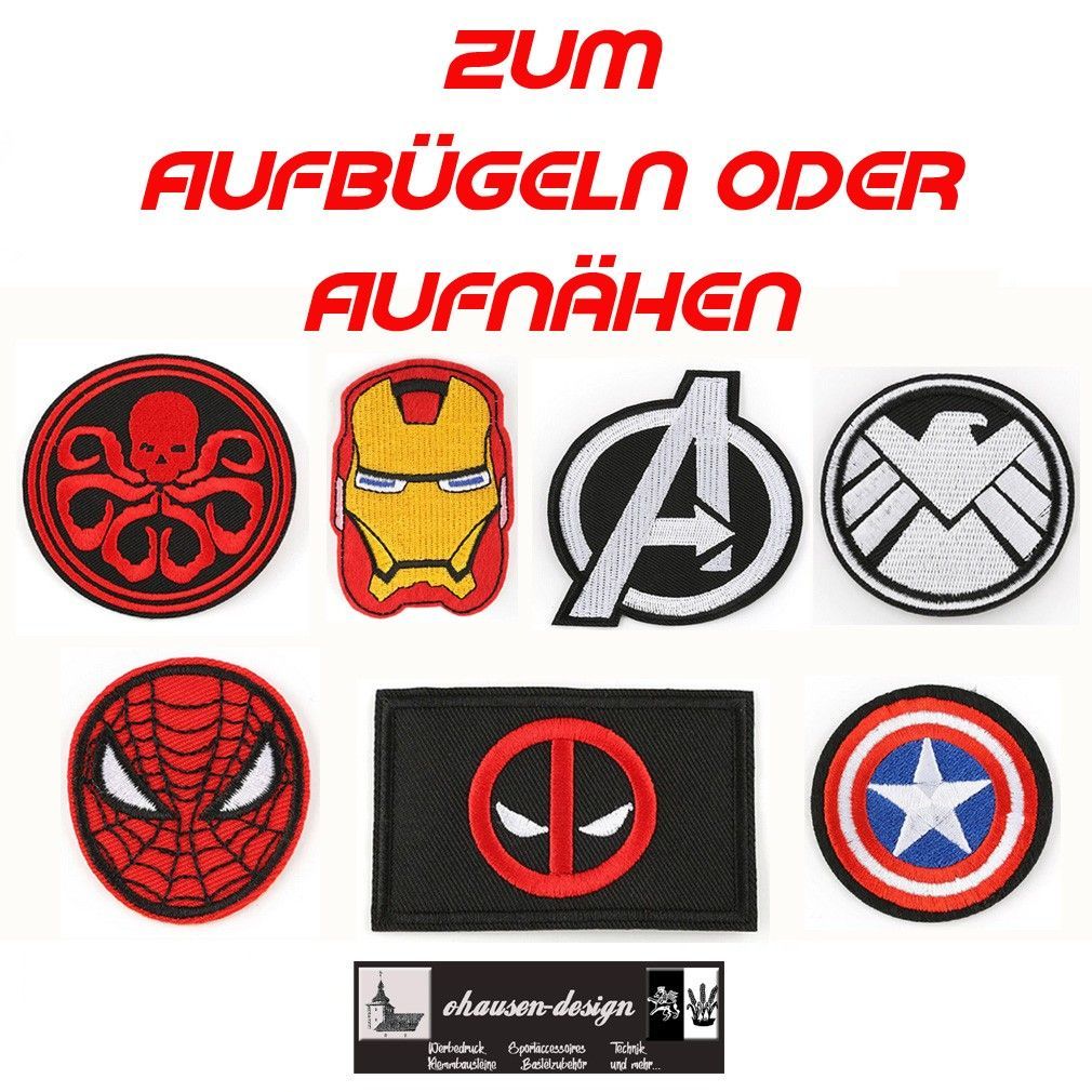 Avengers Aufnäher Aufbügler Badges Patches Ironman Shield Deadpool Hydra Spiderman Zum Aufbügeln oder Aufnähen
