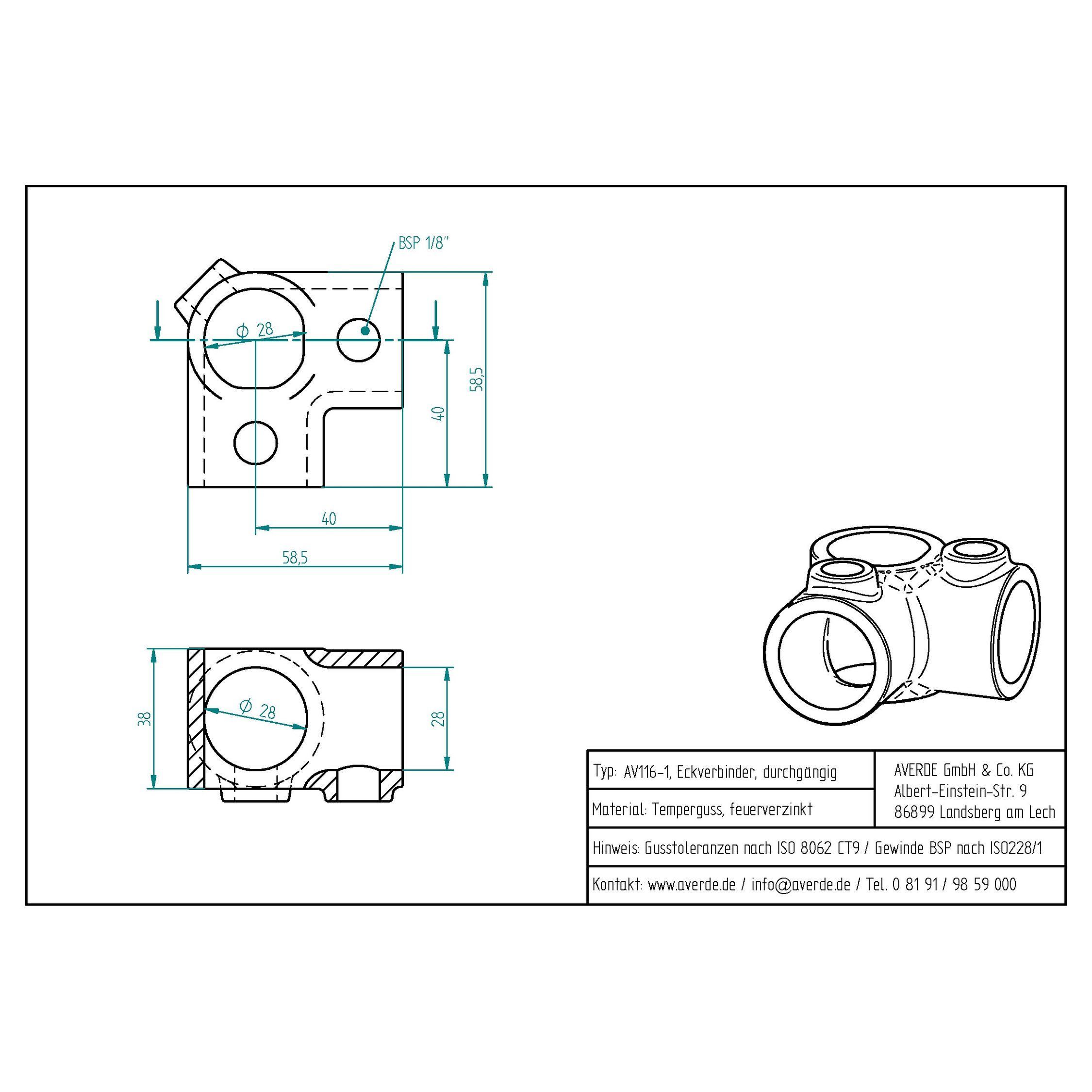 AVERDE Rohrverbinder Eckverbinder schwarz 3/4" (26,9 mm), 90? - Durchgang