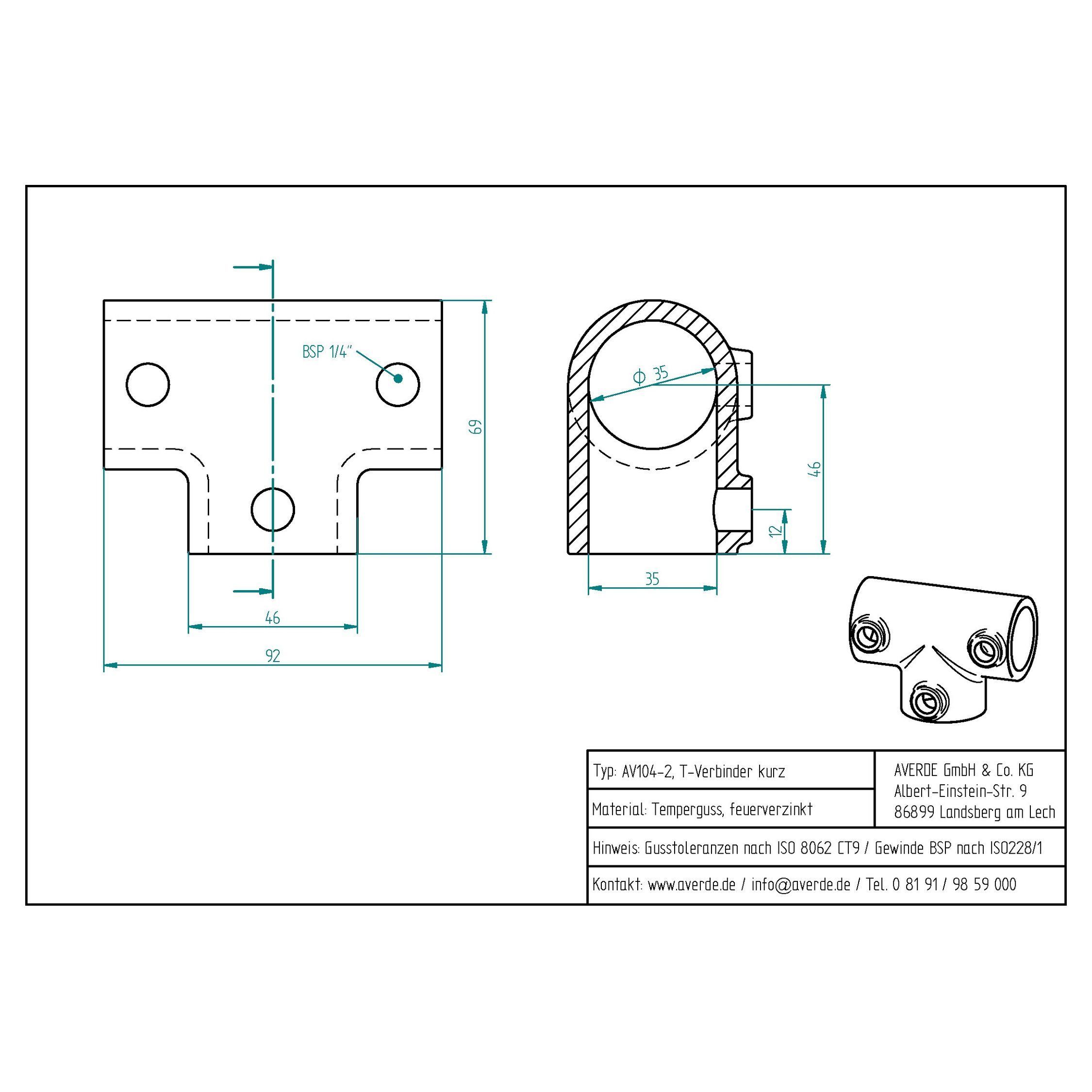 AVERDE Rohrverbinder T-Verbinder schwarz 1" (33,7 mm), 90? - lang