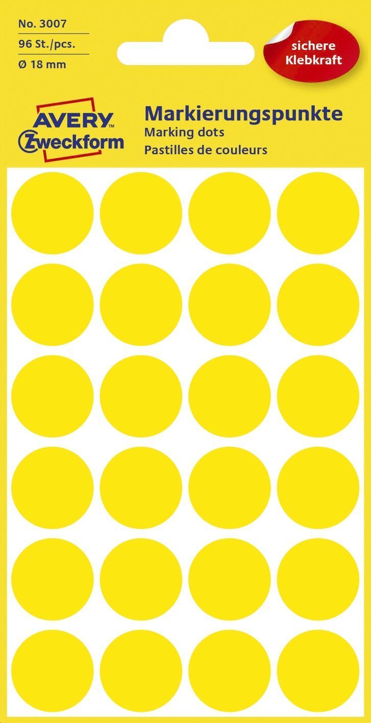 AVERY Zweckform Avery Zweckform® 3007 3007 Markierungspunkte - Ø 18 mm, 4 Blatt/96 Etiketten, gelb