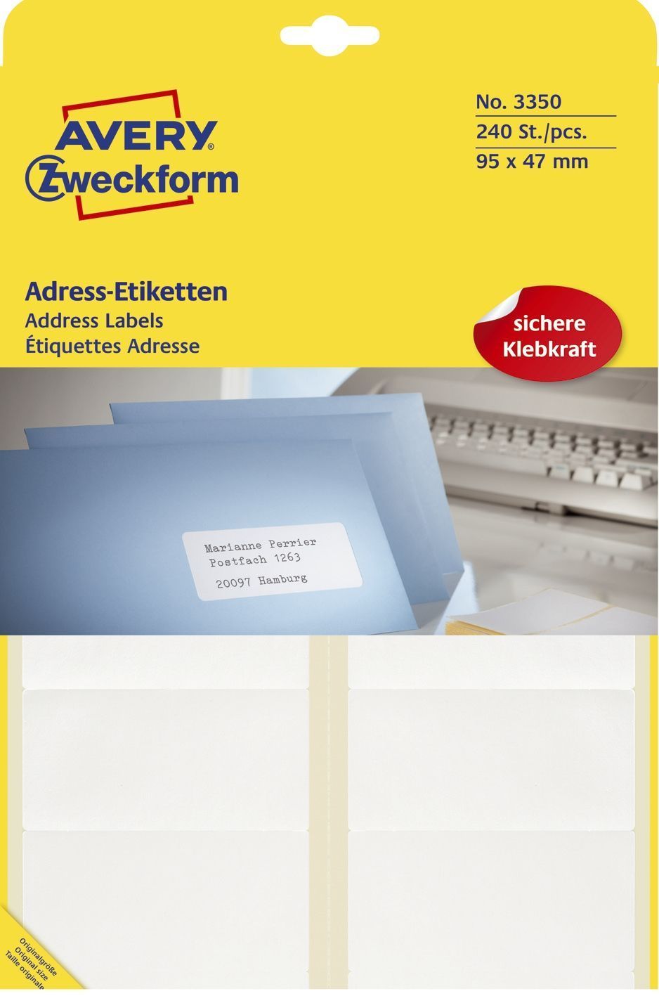 AVERY Zweckform Avery Zweckform® 3350 3350 Adress-Etiketten - 95 x 47 mm, selbstklebend, 240 Stück