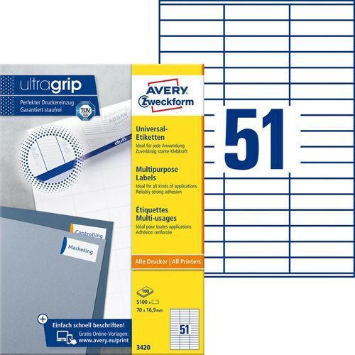 AVERY ZWECKFORM Avery Zweckform 3420 70 x 16,9mm Universal-Etiketten DIN A4 weiß