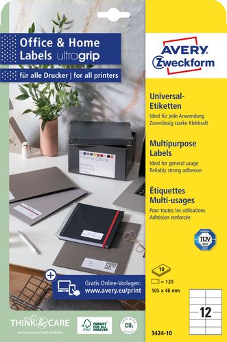 Avery Zweckform® AVERY Zweckform 3424-10 Adressaufkleber (120 Etiketten, 105x48mm