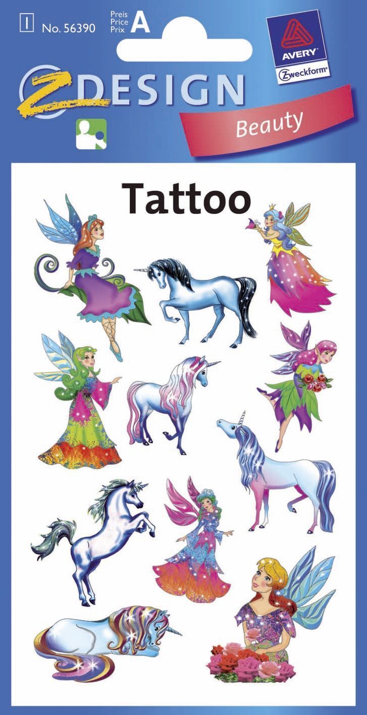 AVERY Zweckform Avery Zweckform® 56390 Z-Design 56390, Kinder Tattoos, Elfen, Einhörner, 1 Bogen/11 T