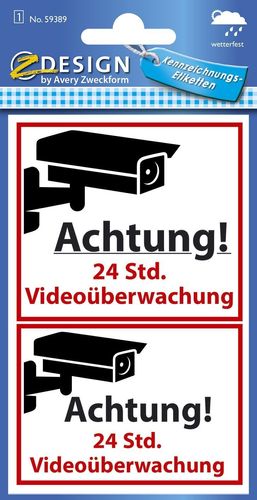 AVERY Zweckform Avery Zweckform® 59389 Warnetikett Videoüberwacht wetterfest(S)