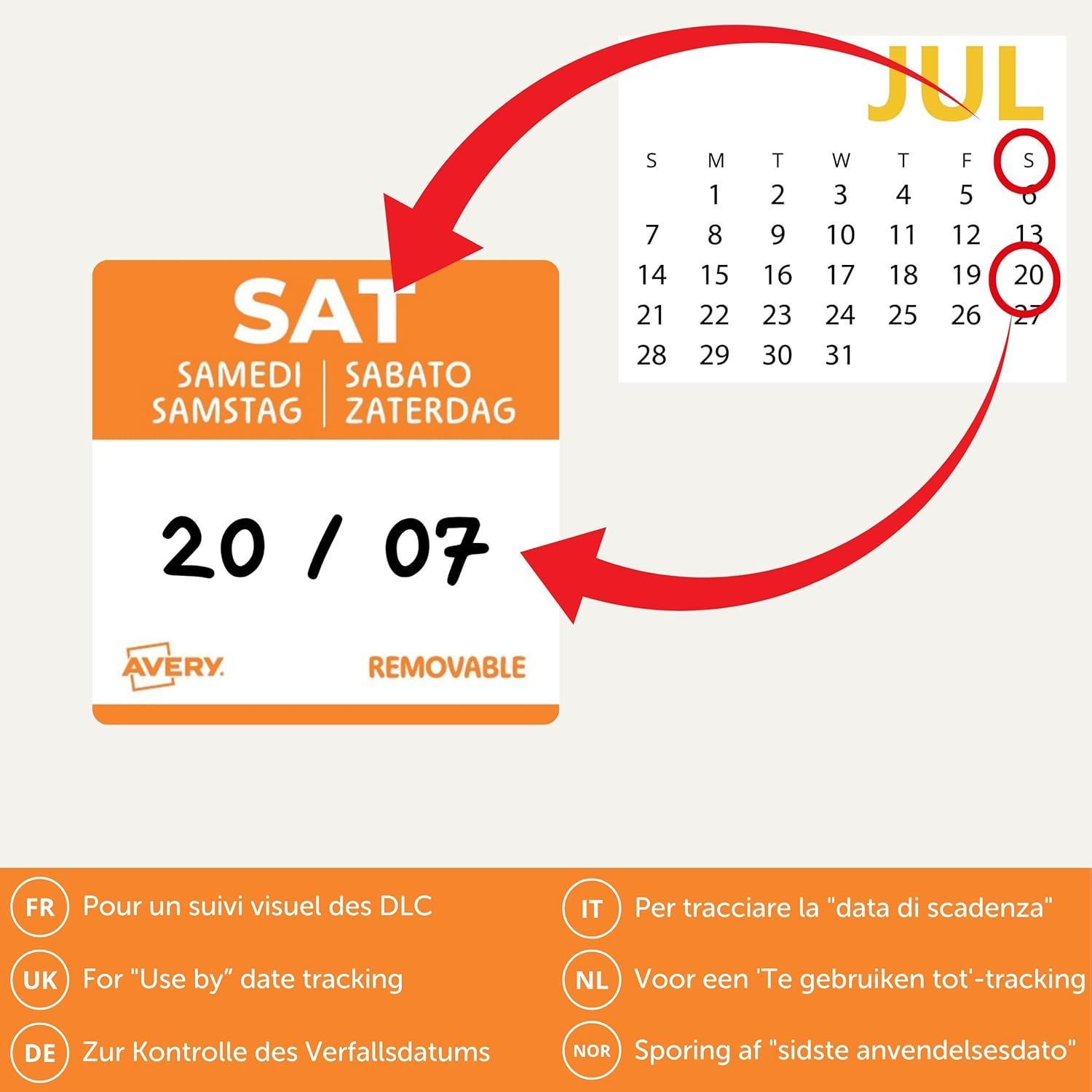 Avery Zweckform® AVERY Zweckform ablösbare Lebensmittel-Tagesetiketten Samstag (orange 25 x 25 mm 1000