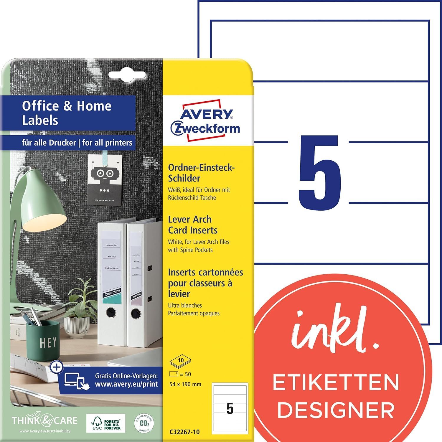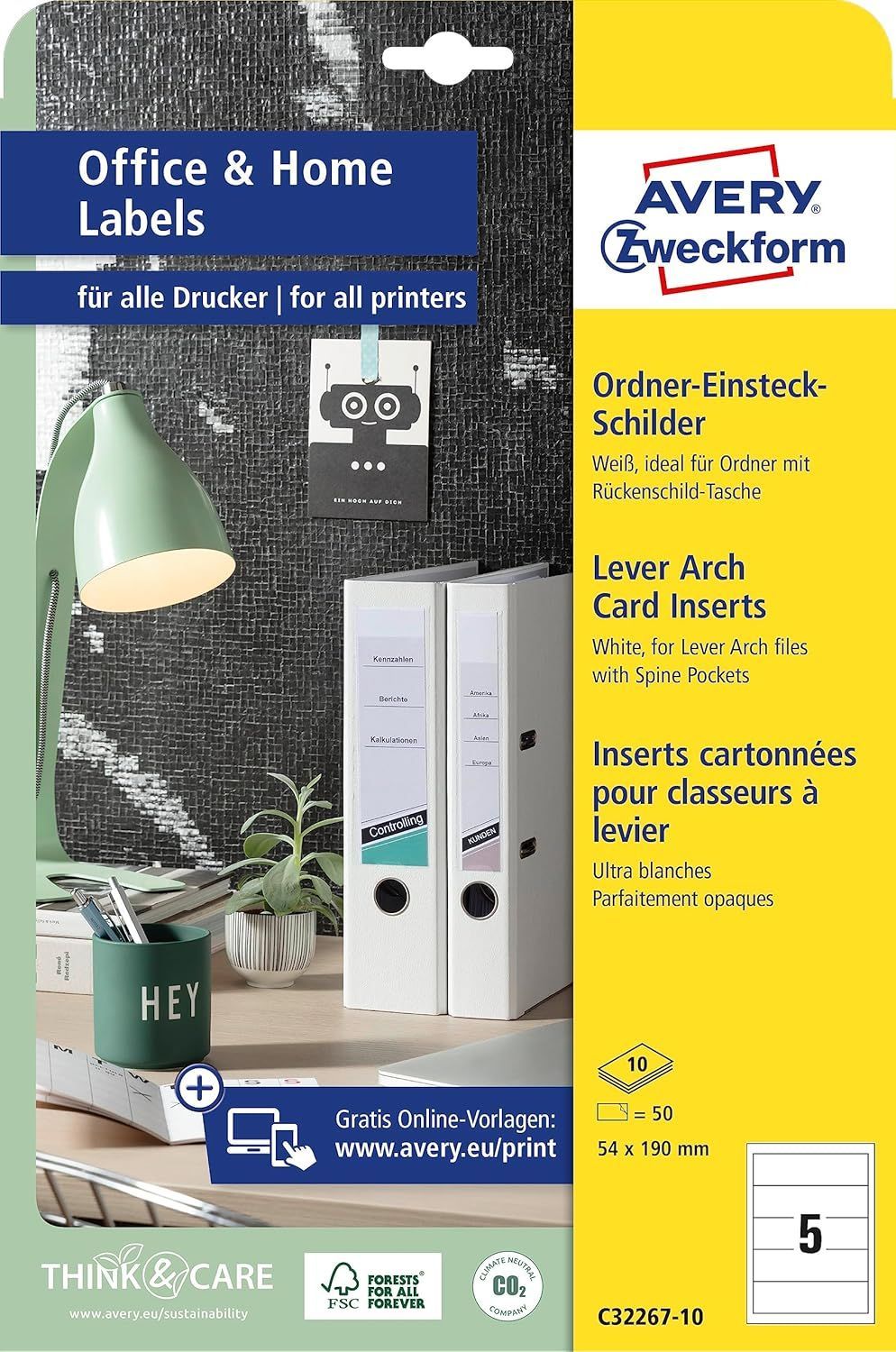 Avery Zweckform® AVERY Zweckform C32267-10 Ordnerrücken Einsteckschilder 50 Rückenschilder