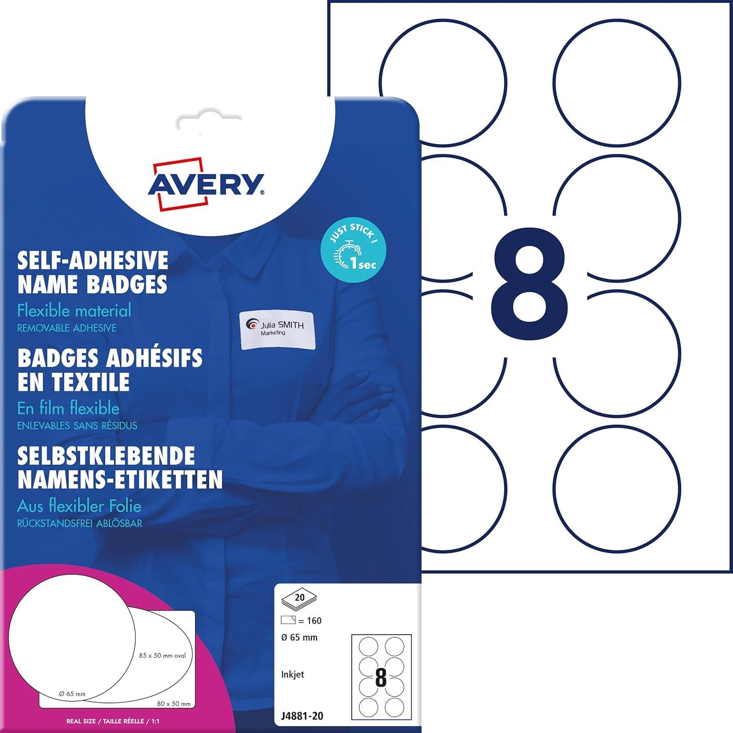Avery Zweckform® Avery Zweckform J4881-20 Namensetiketten (160 Namensaufkleber rund