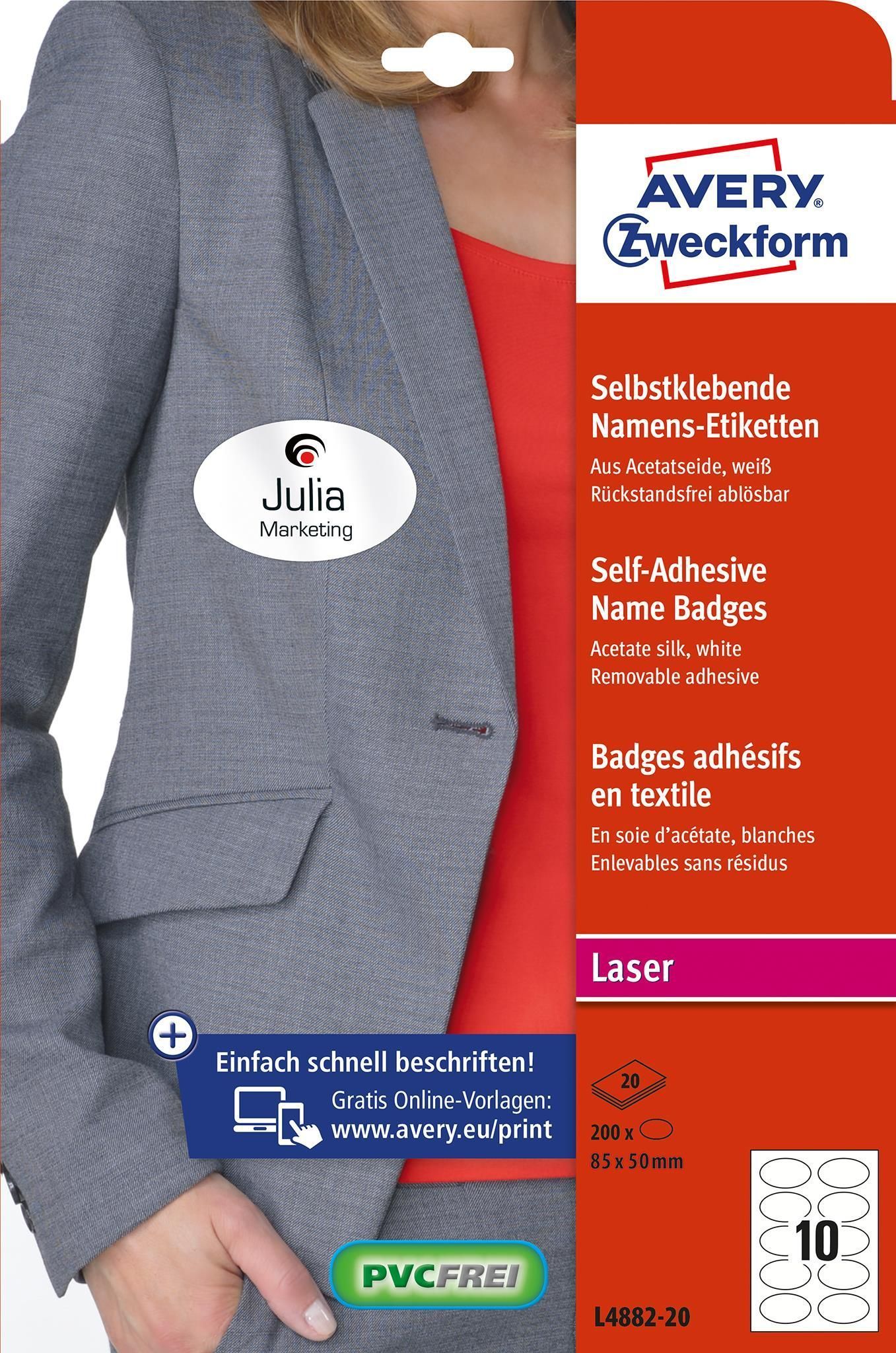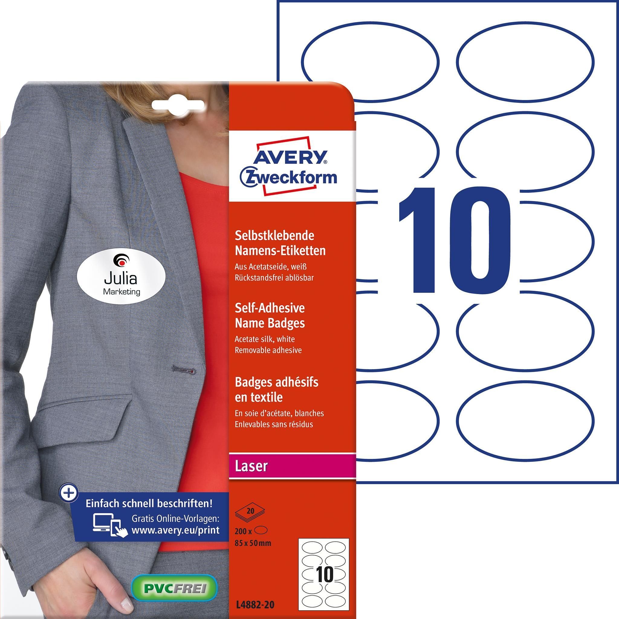 AVERY Zweckform L4882-20 ovalNamensetiketten 85x50mm wei? 200ST