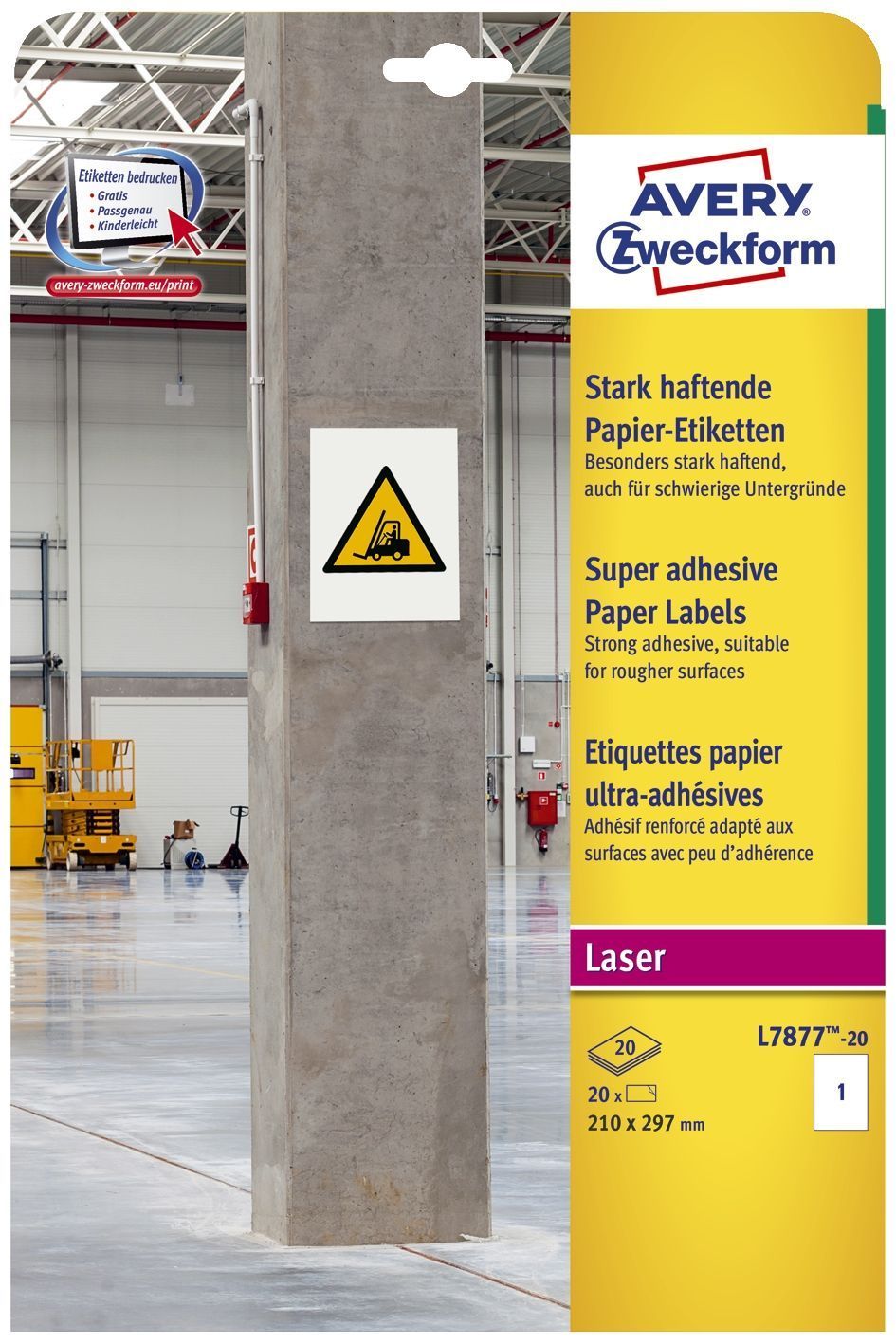 AVERY Zweckform Avery Zweckform® L7877-20 L7877-20 Papier-Etiketten - A4, 20 Stück, 210 x 297 mm, sta