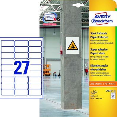 • AVERY Zweckform L7874-20 Avery Zweckform® L7874-20 Papier-Etiketten - A4, 540 Stück,