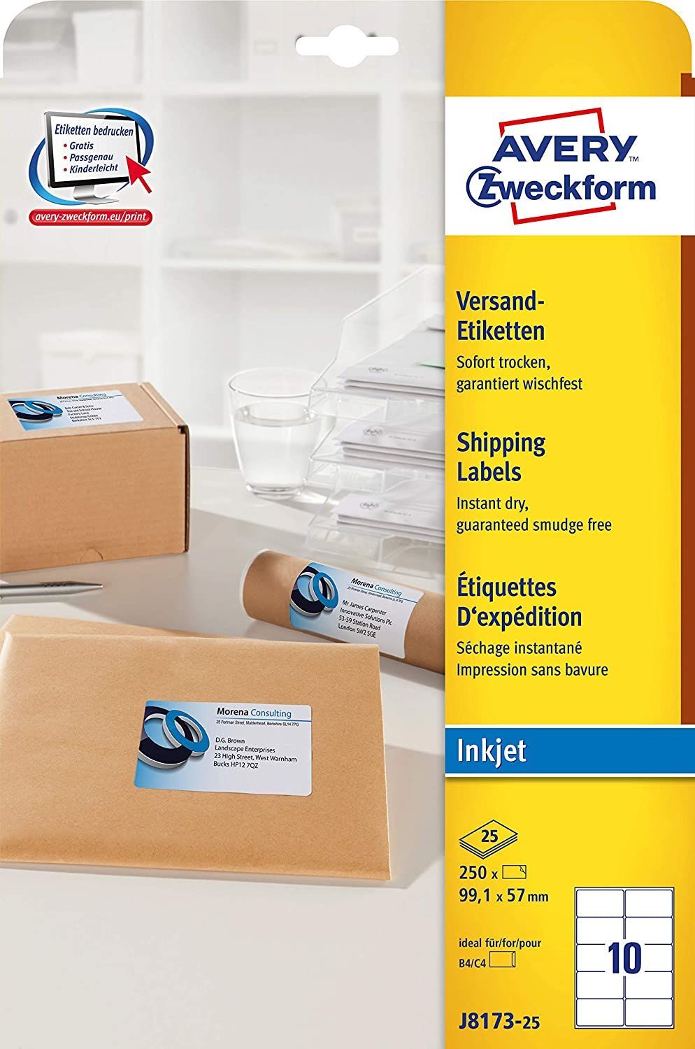 Avery Zweckform® AVERY Zweckform schnelltrocknende Adressetiketten (für Tintenstrahldrucker 10 pro Bla