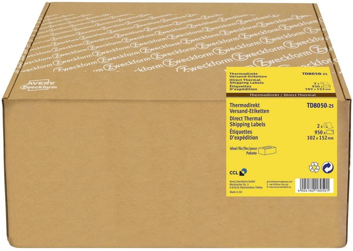AVERY Zweckform Avery Zweckform® TD8050-25 Thermoetikettrollen - 102 x 152 mm, permanent haftend,