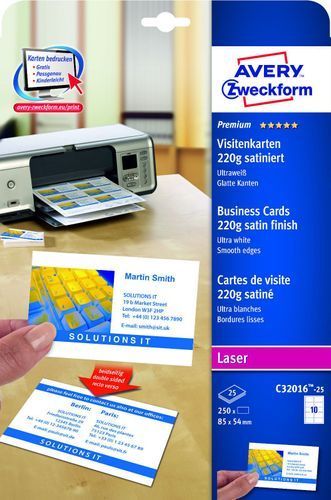 AVERY ZWECKFORM Avery Zweckform Visitenkarten 85x54mm 220g C32016-25 ultraweiß satiniert