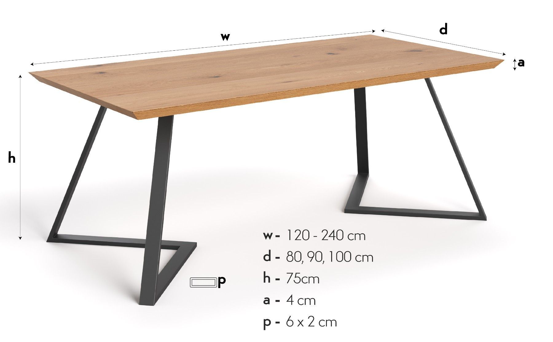 Avil-Eichentisch mit Metallbeinen, Massivholz Eiche